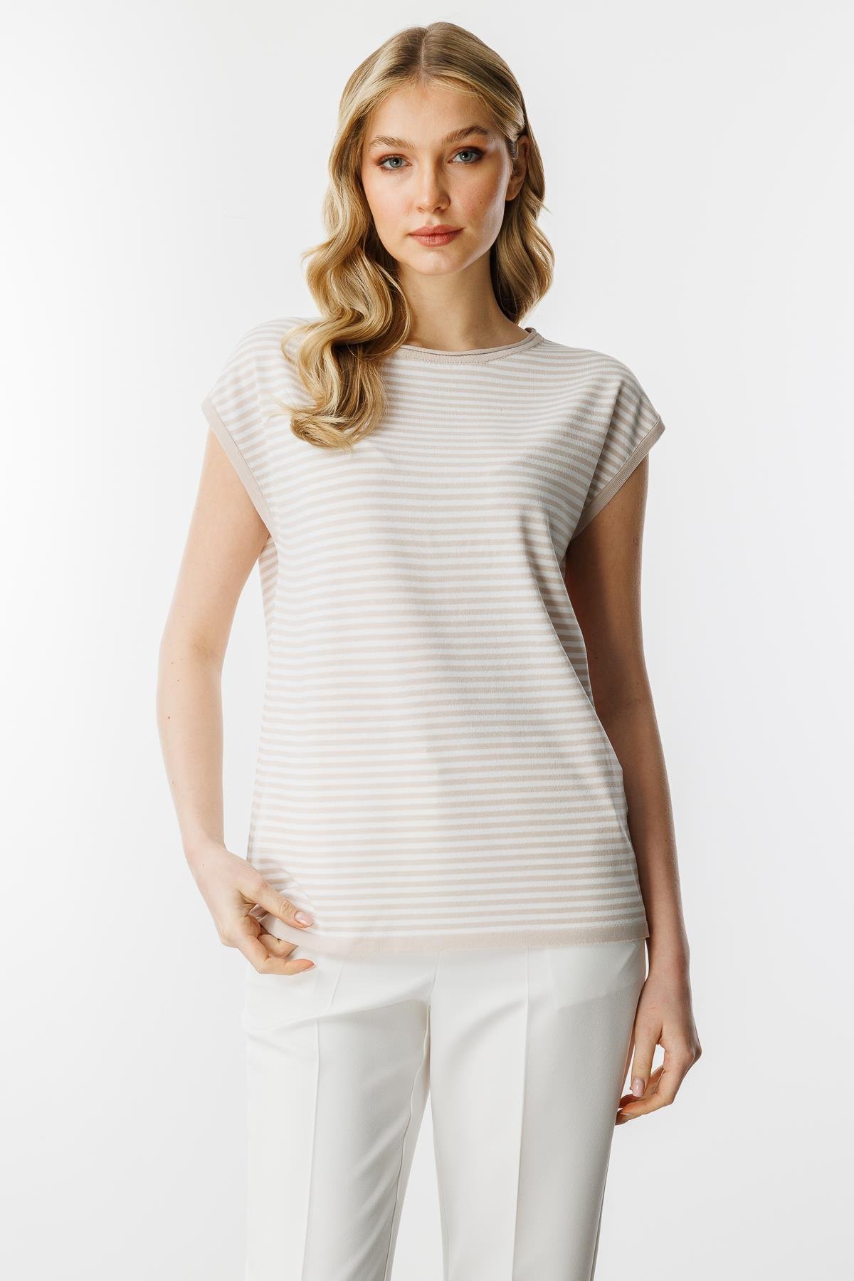 Mutlu Ertan Kadın Çizgili Basic Triko Bluz Vizon - Ekru 20187 (20187)
