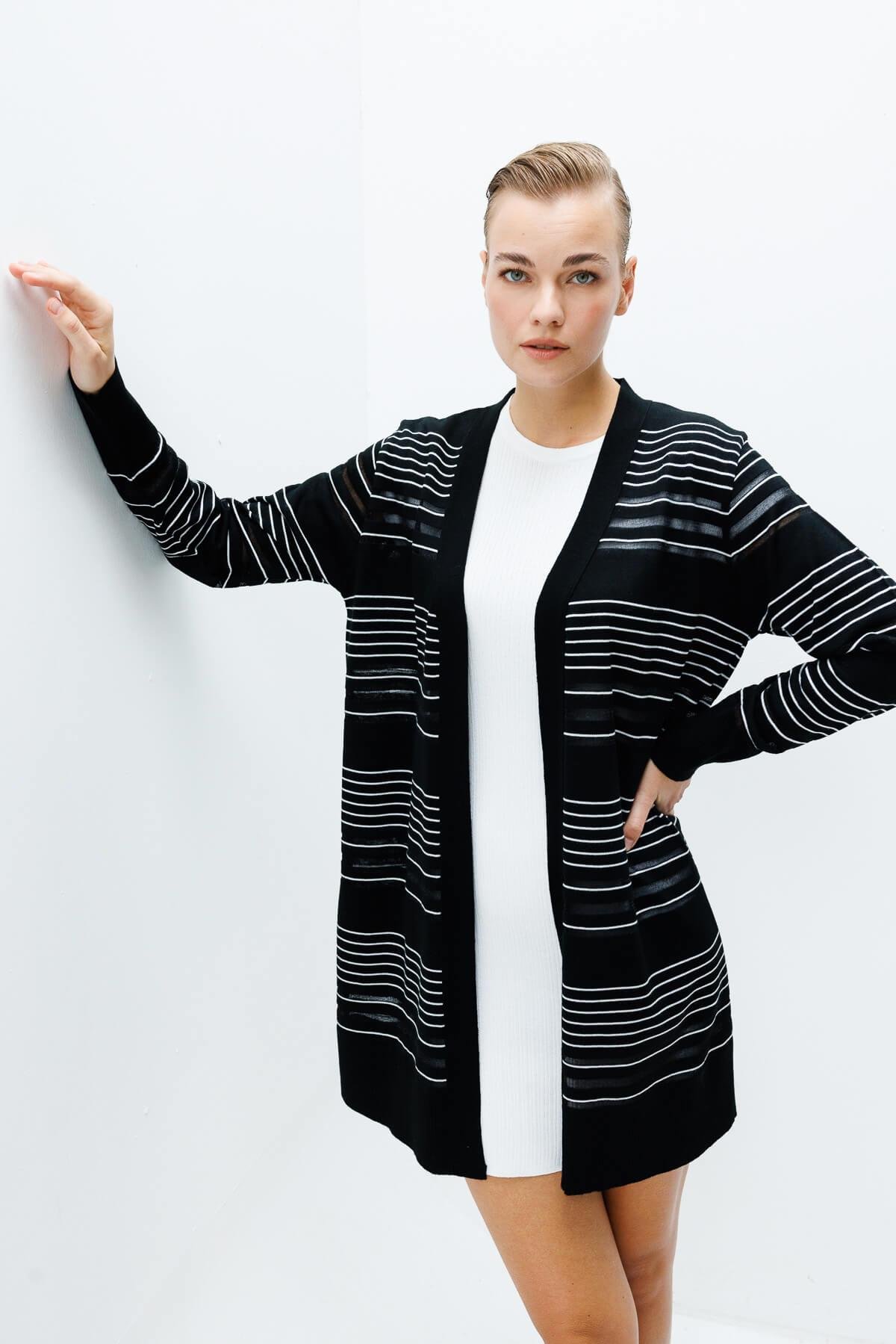 Mutlu Ertan Kadın Çizgili Simli Triko Hırka Siyah-Ekru 20113 (20113)