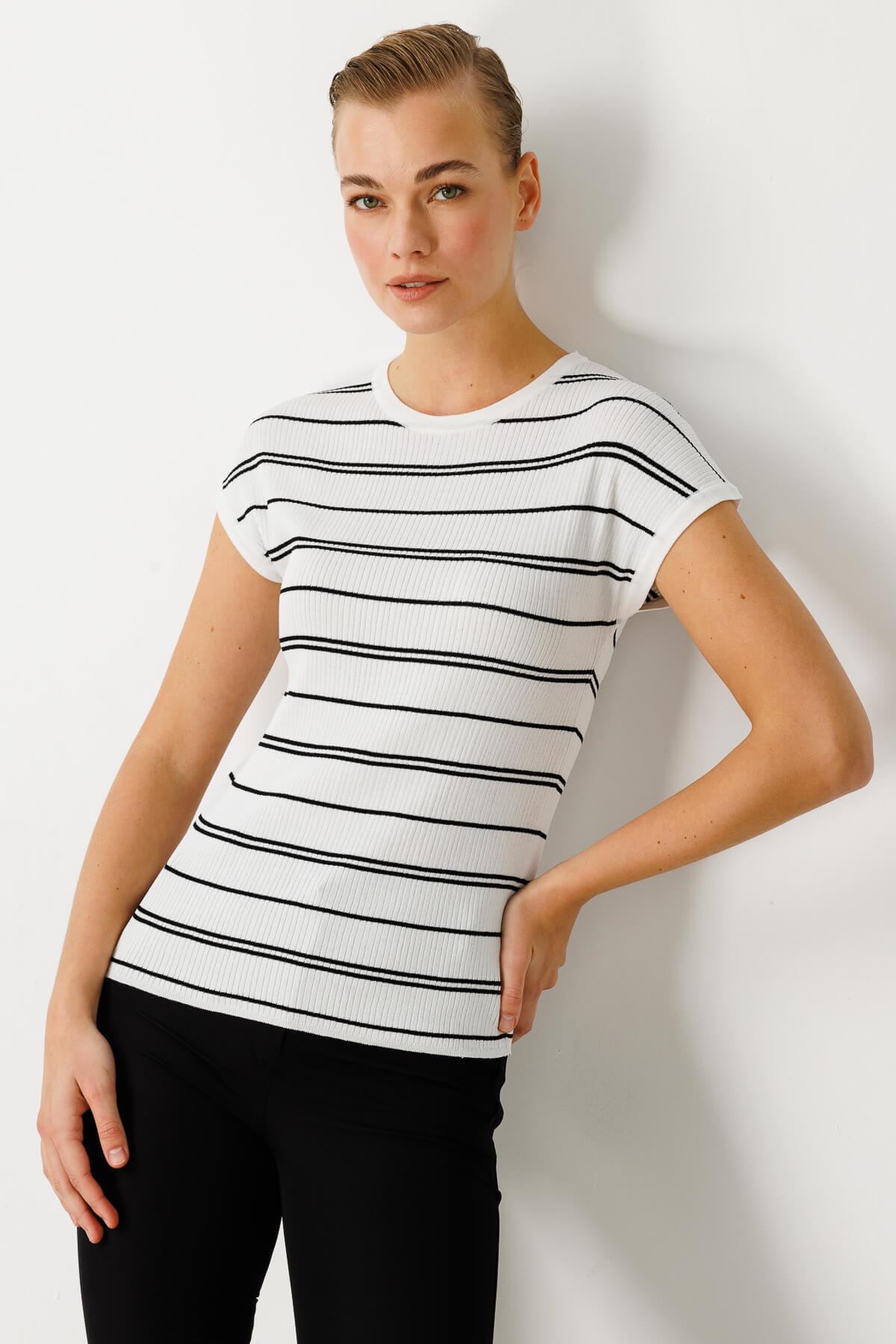 Mutlu Ertan Kadın Çizgili Triko Bluz Ekru 20100 (20100)