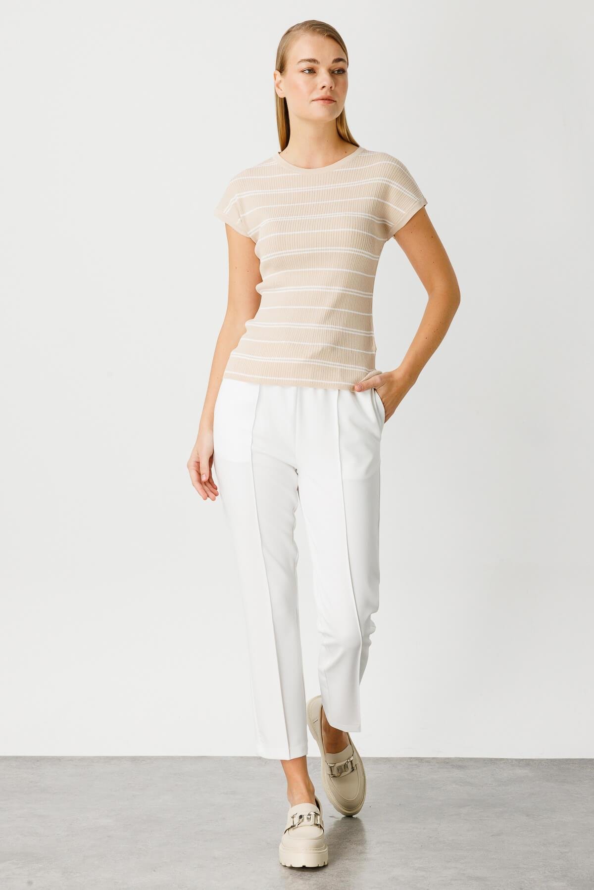 Mutlu Ertan Kadın Çizgili Triko Bluz Taş 20100
