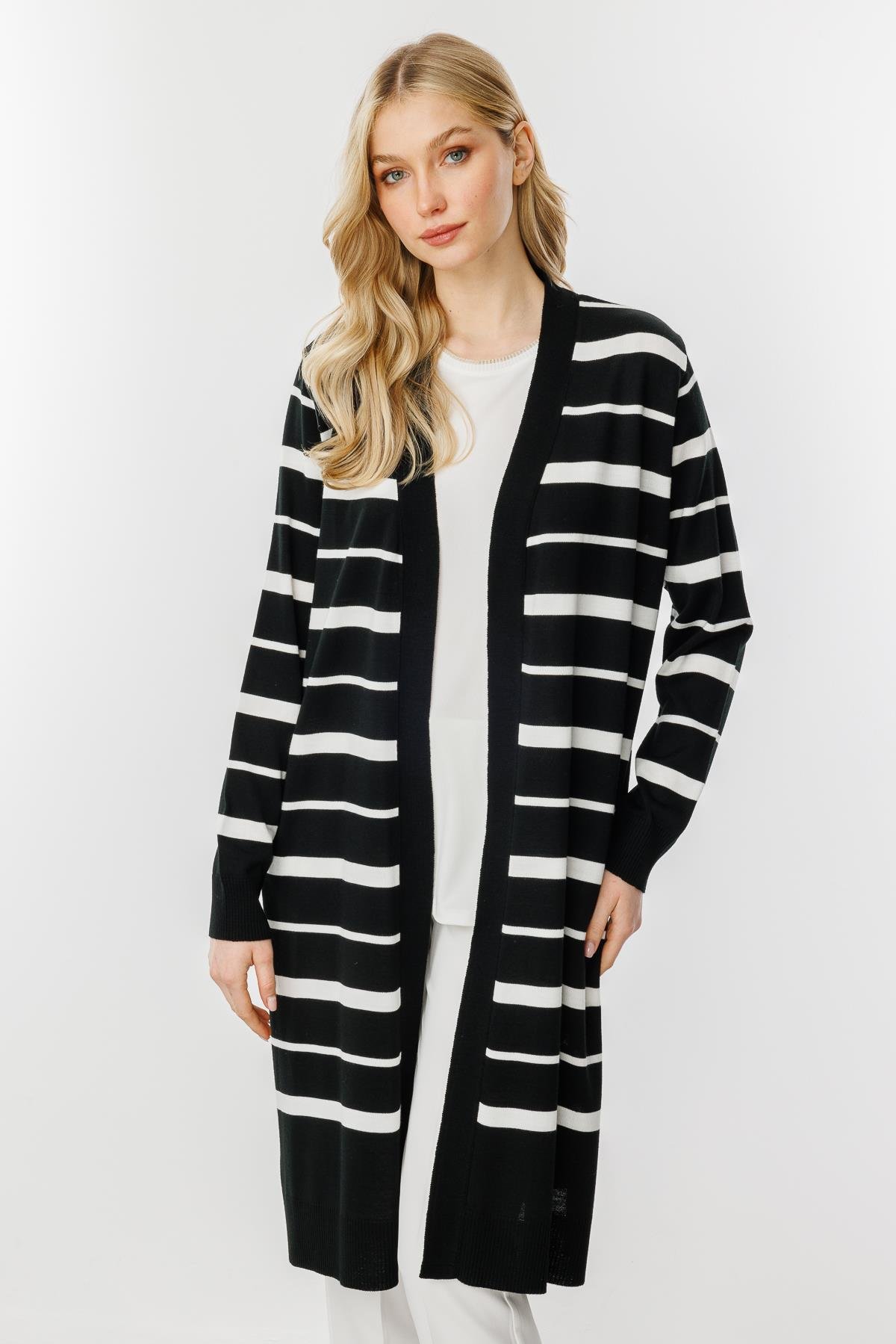Mutlu Ertan Kadın Çizgili Triko Hırka Siyah-Ekru 20023 (20023)