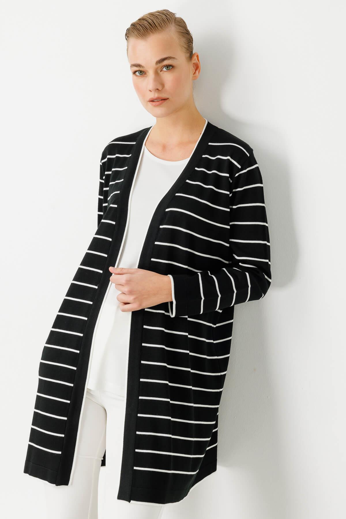 Mutlu Ertan Kadın Çizgili Triko Hırka Siyah-Ekru 20106 (20106)