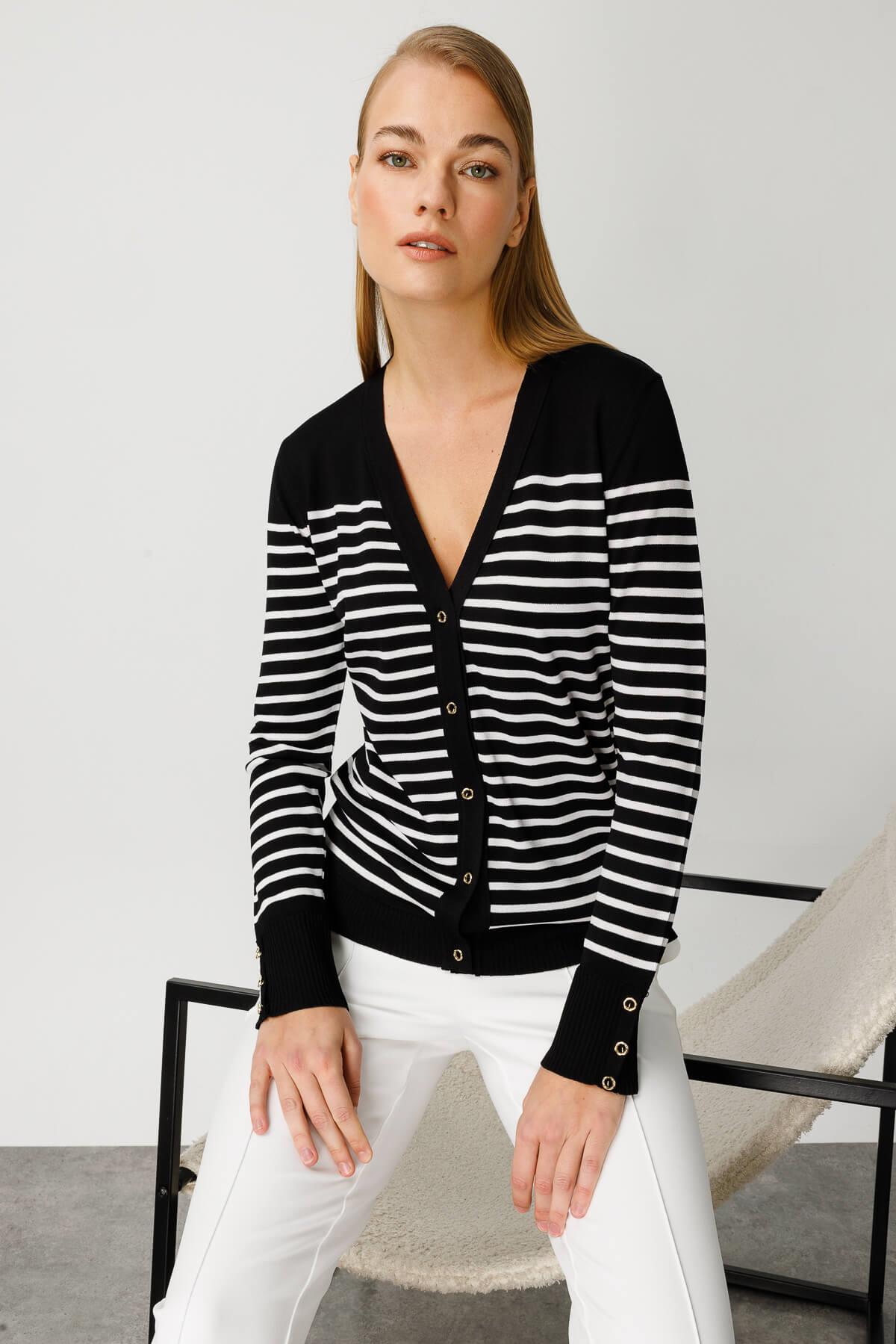 Mutlu Ertan Kadın Çizgili Triko Hırka Siyah-Ekru 20099 (20099)
