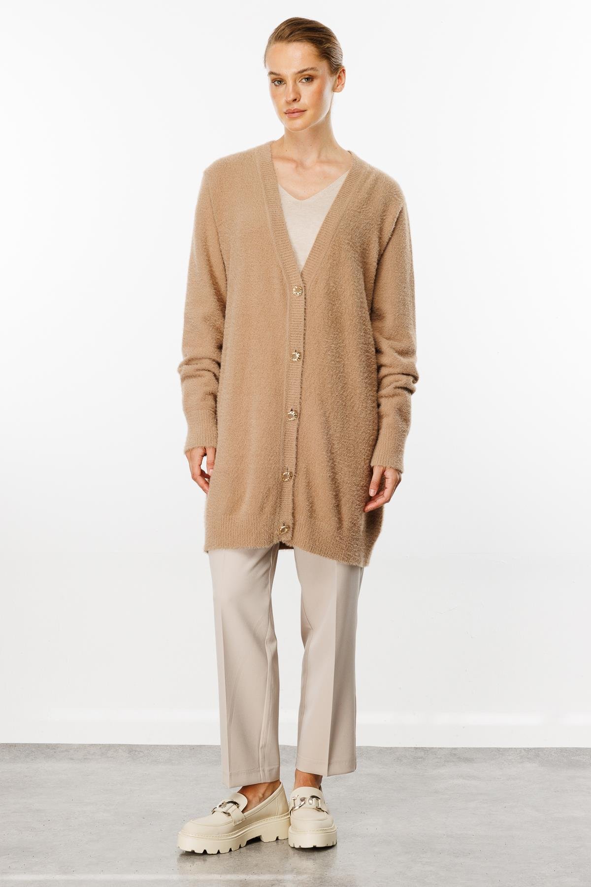 Mutlu Ertan Kadın Angored V Yaka Tirko Hırka Vizon 20091