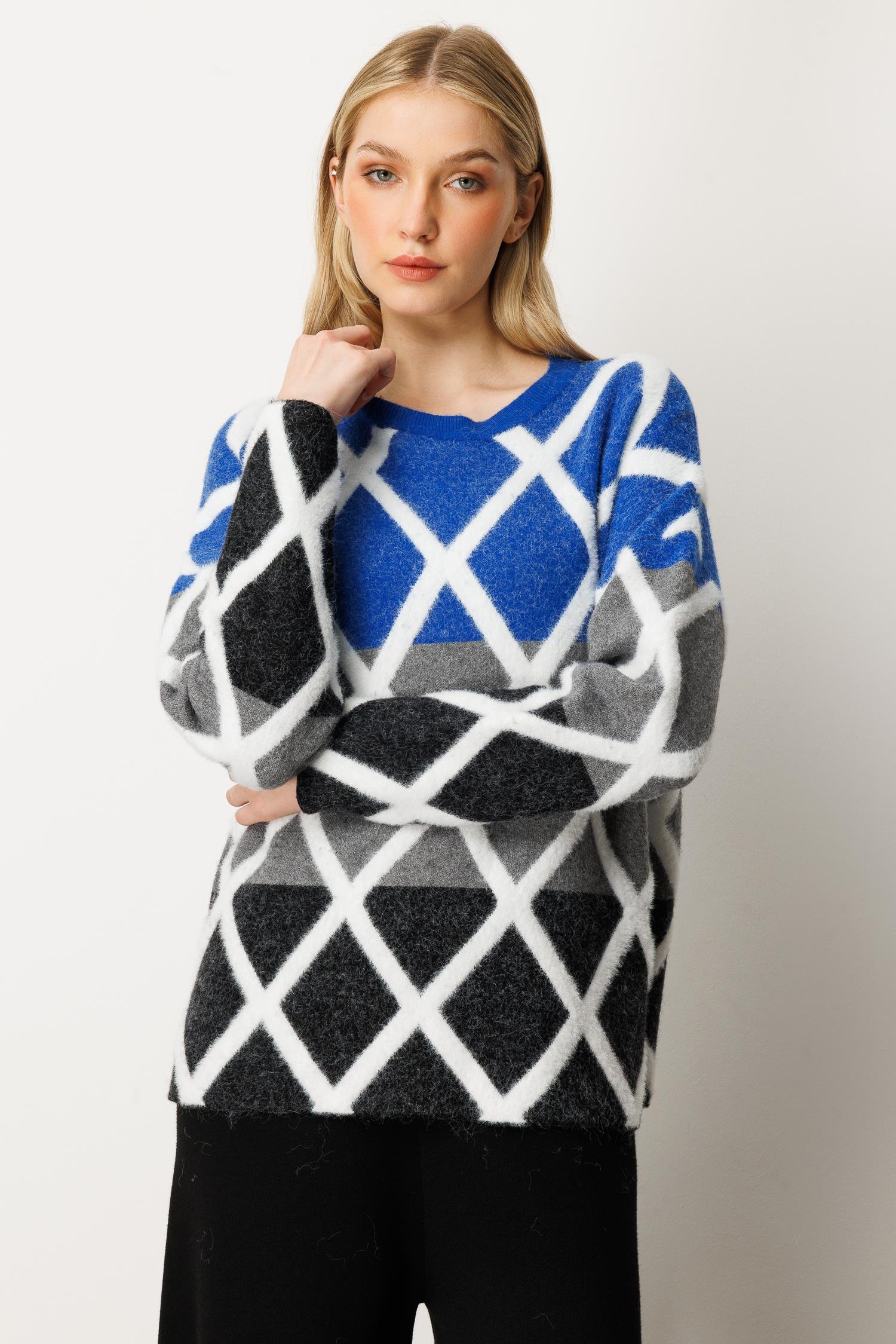 Mutlu Ertan Kadın Baklava Desenli Triko Kazak Saks 20193 (20193)
