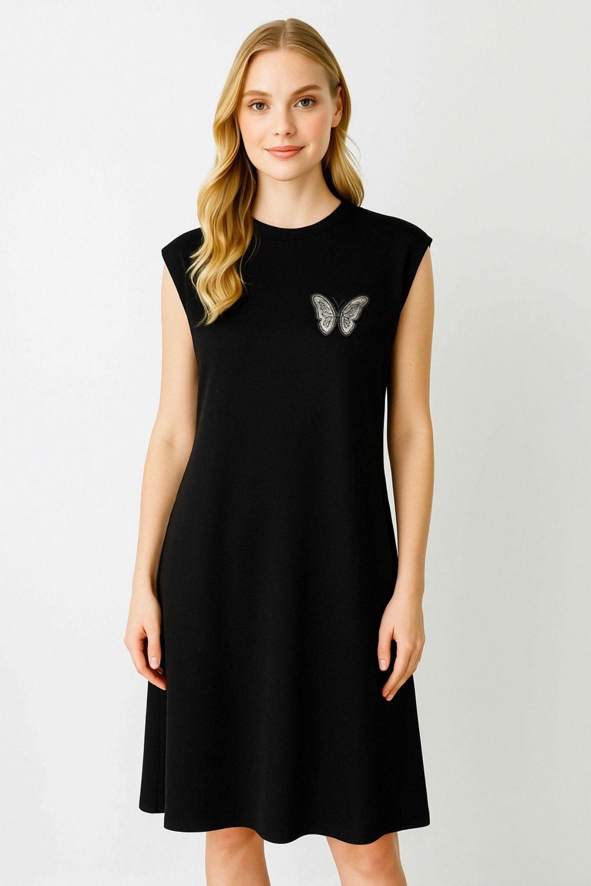 Mutlu Ertan Kadın Broş Detaylı Elbise Siyah 30381 (30381)
