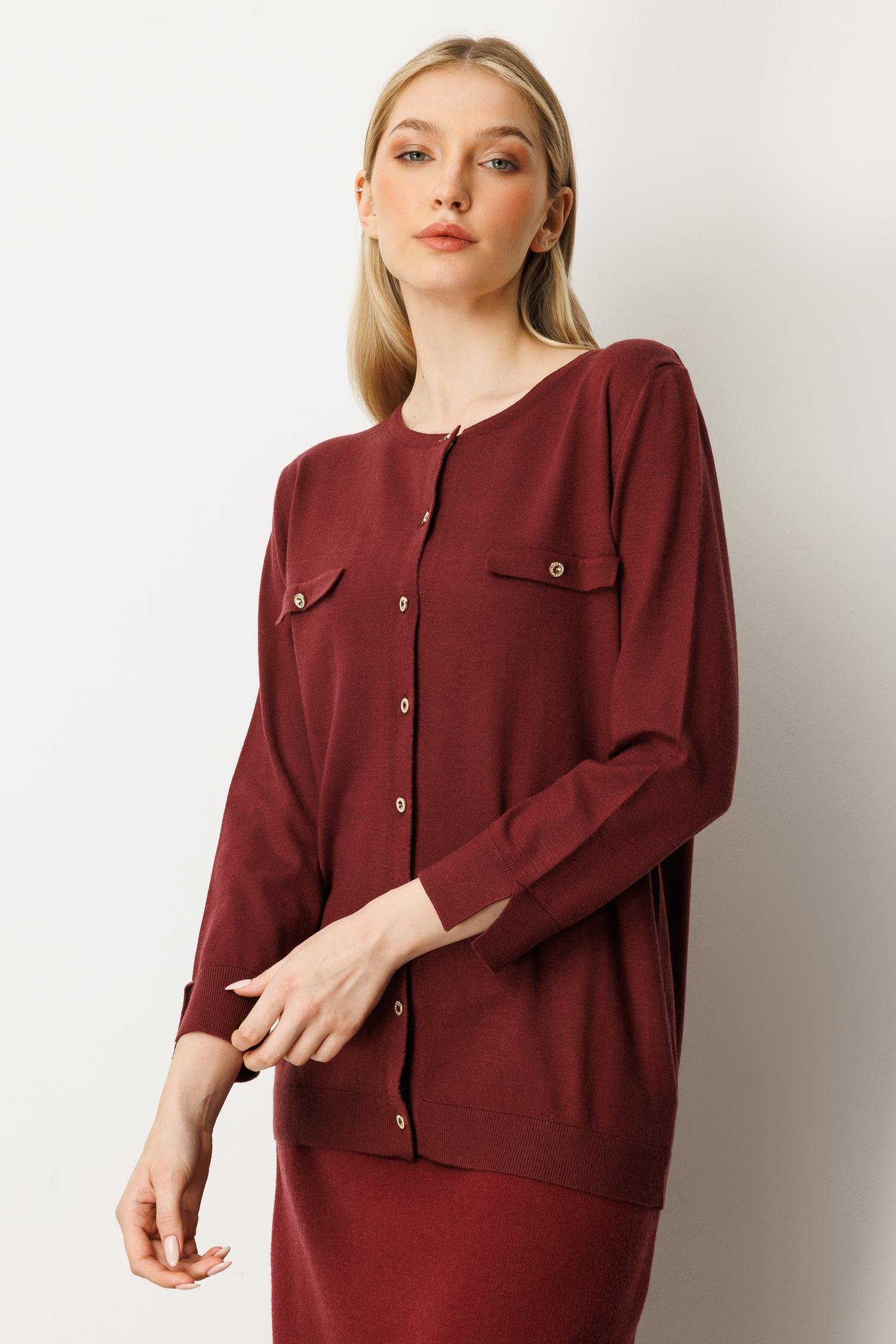 Mutlu Ertan Kadın Cep Detaylı Düğmeli Triko Hırka Bordo 20228 (20228)