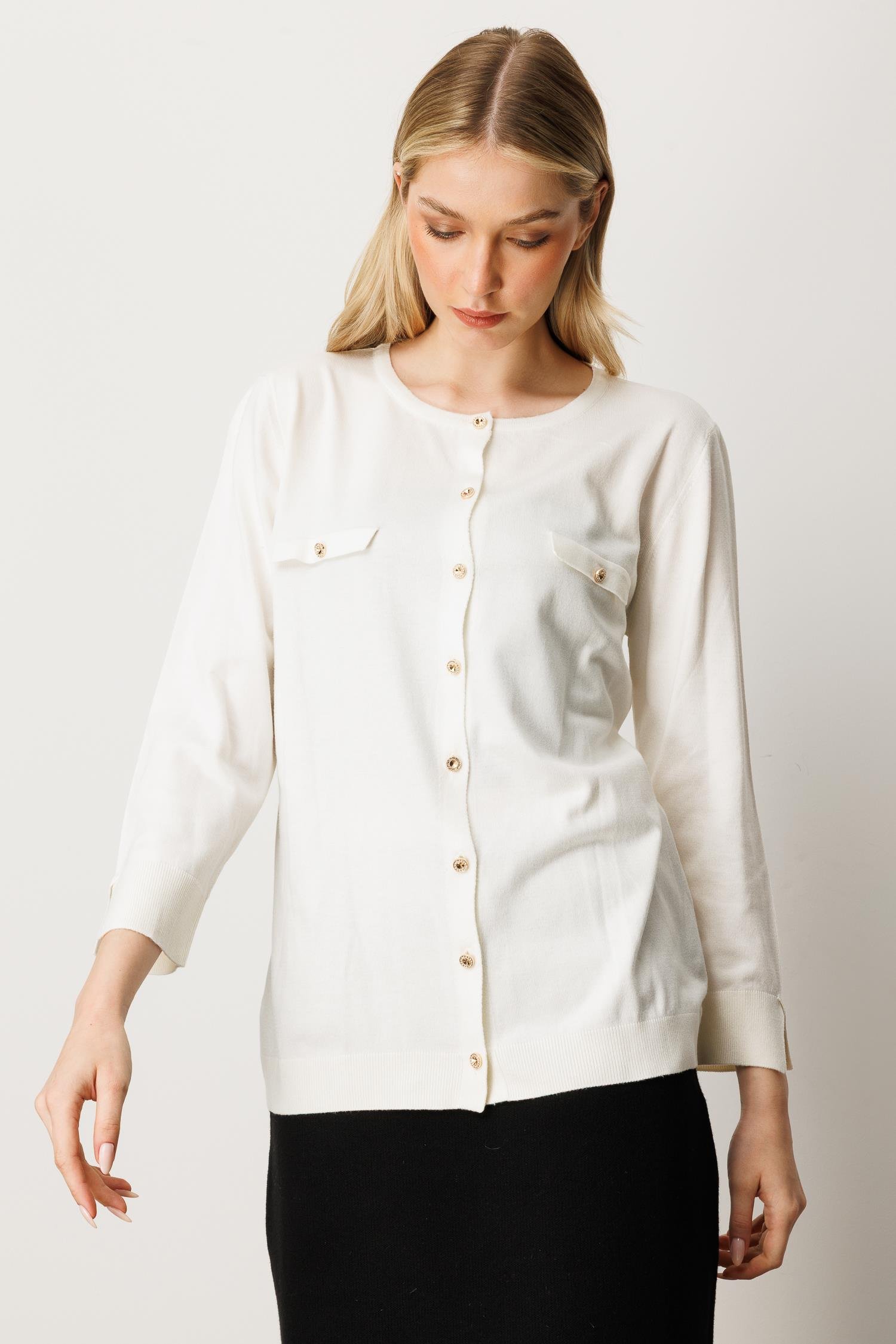 Mutlu Ertan Kadın Cep Detaylı Düğmeli Triko Hırka Ekru 20228 (20228)