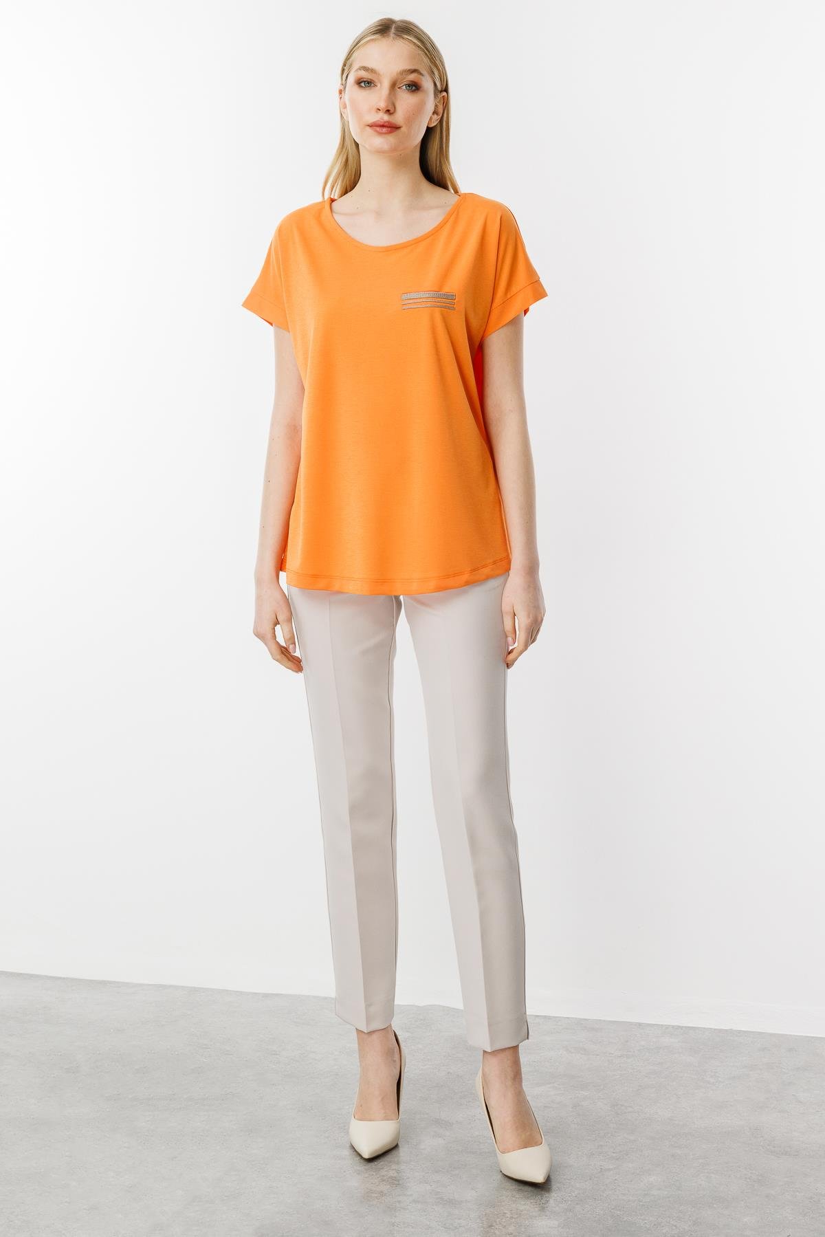 Mutlu Ertan Kadın Cep Detaylı Kısa Kol Bluz Turuncu 30341 (30341)