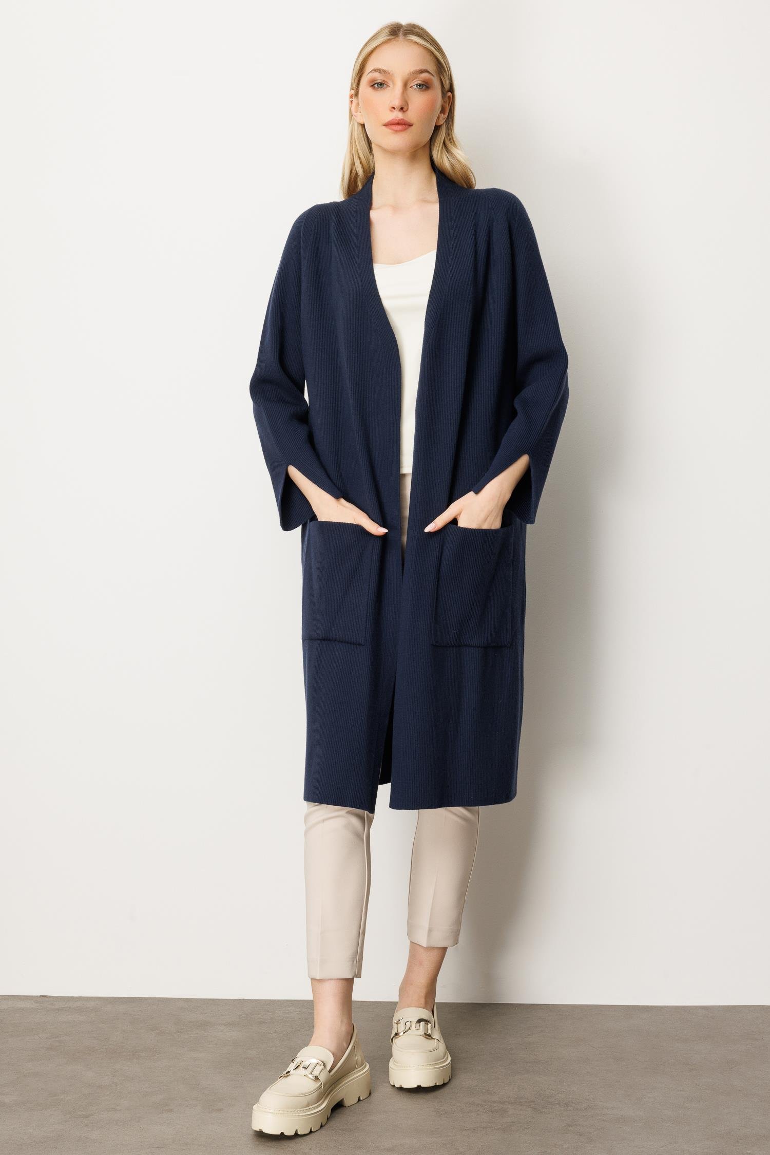 Mutlu Ertan Kadın Cep Detaylı Uzun Hırka Lacivert 20242 (20242)