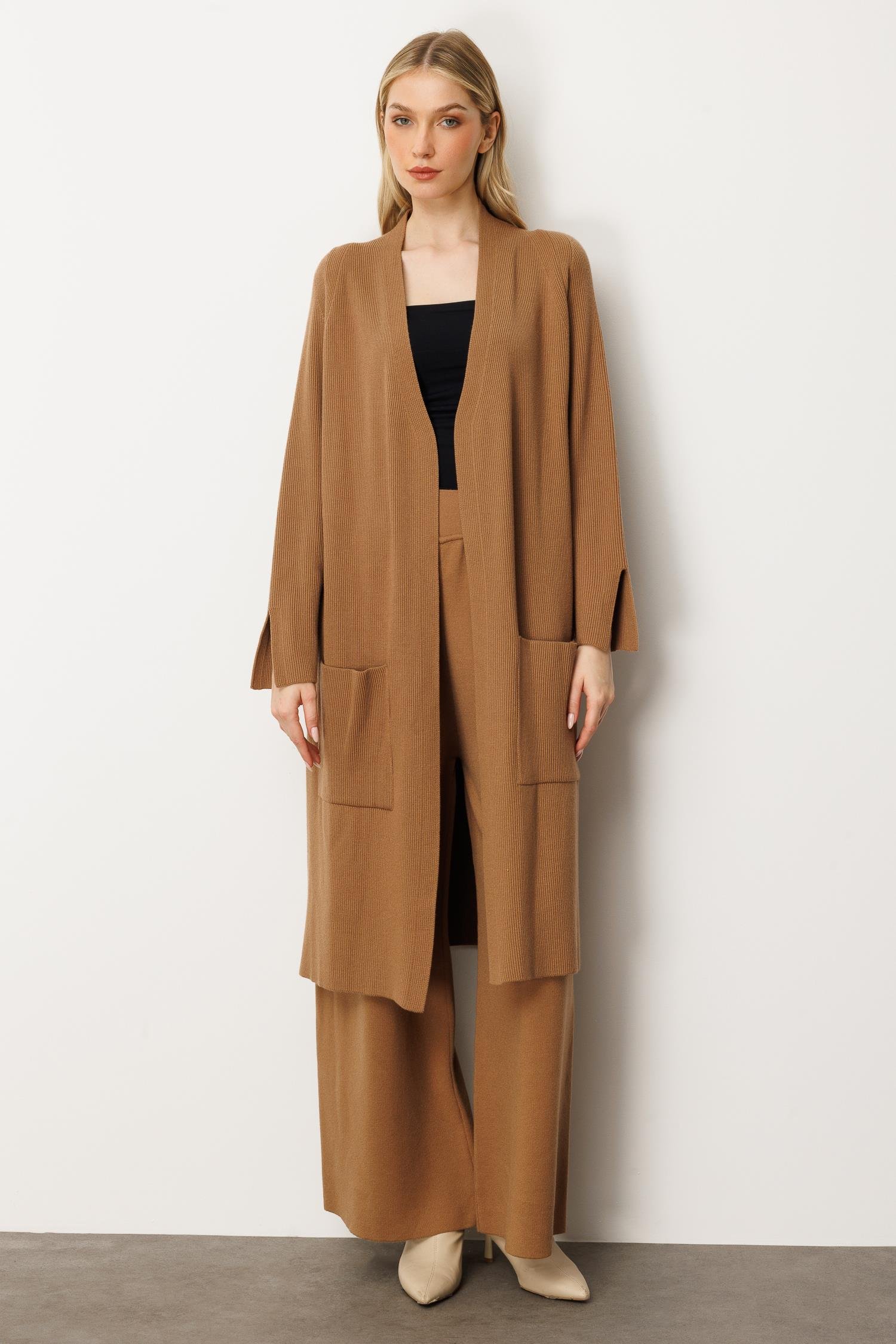 Mutlu Ertan Kadın Cep Detaylı Uzun Hırka Camel 20242 (20242)