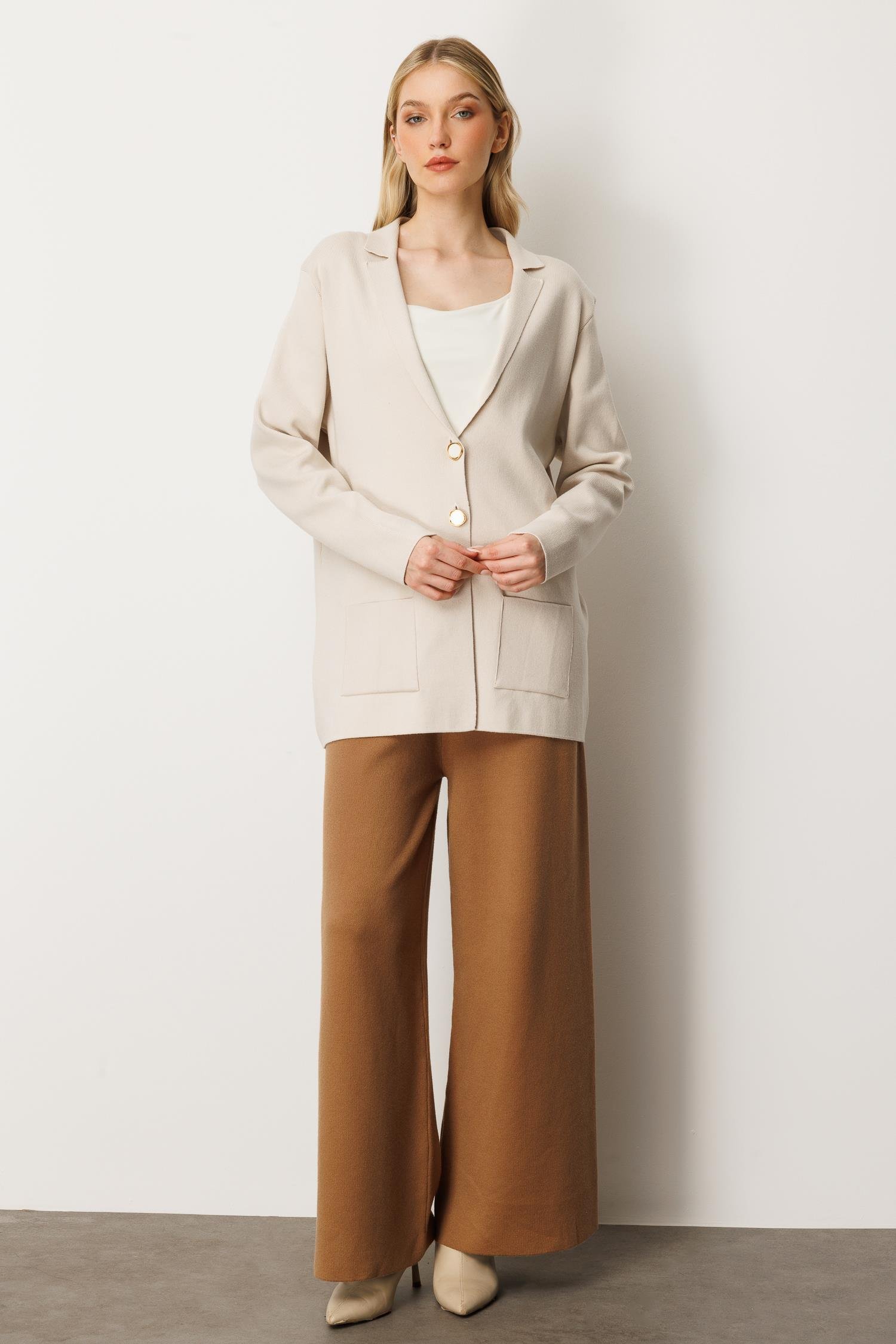 Mutlu Ertan Kadın Düğme Detaylı Triko Ceket Taş 20235 (20235)