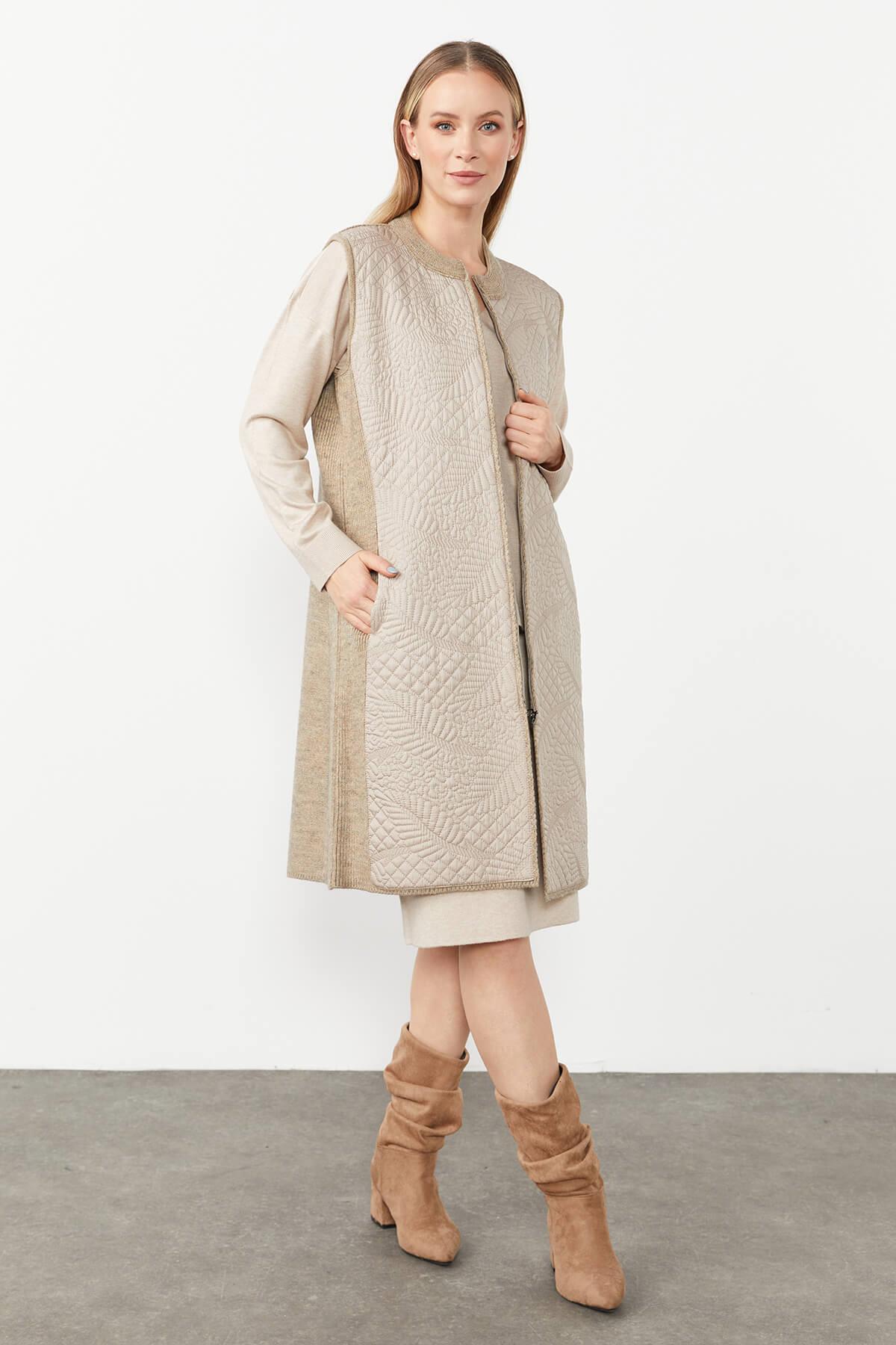 Mutlu Ertan Kadın Desenli Kapitone Uzun Triko Yelek Vizon 20073 (20073)