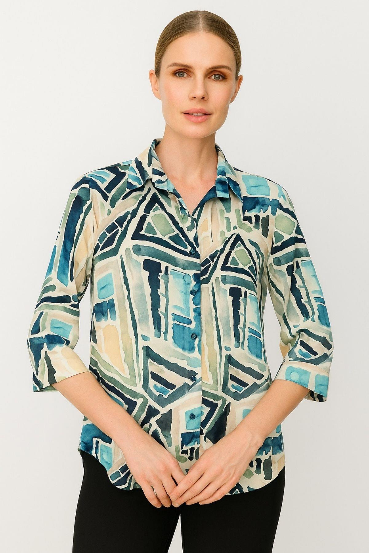 Mutlu Ertan Kadın Desenli Krep Gömlek Desenli Ekru 30396 (30396)