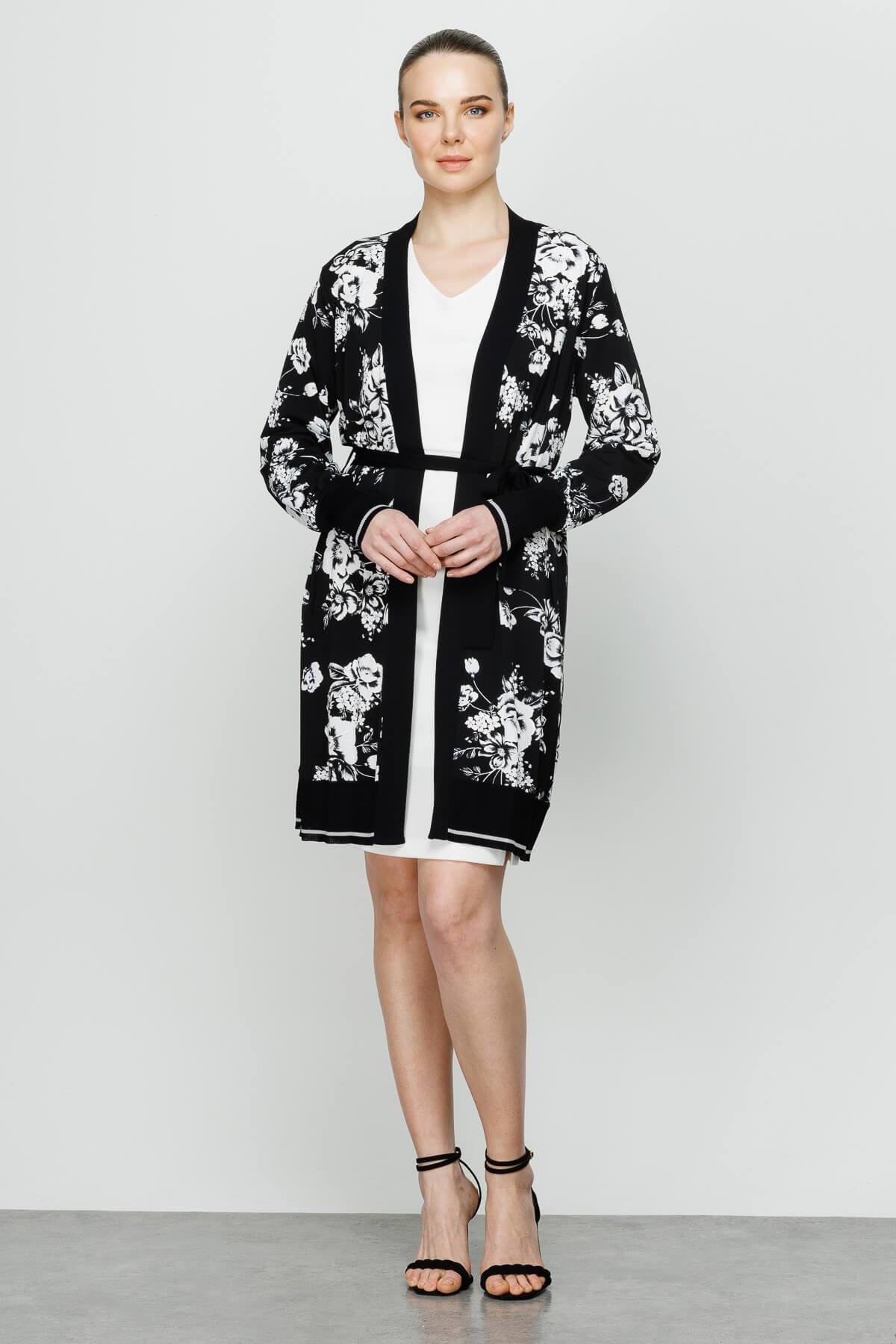 Mutlu Ertan Kadın Desenli Ribanalı Hırka Siyah-Ekru 30121
