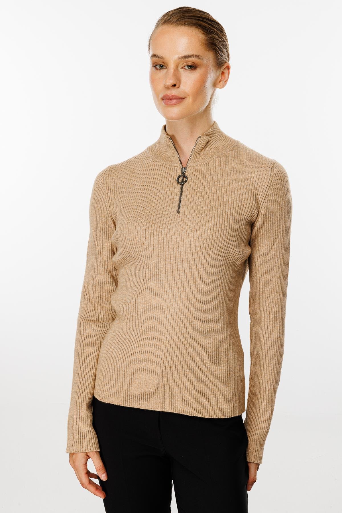 Mutlu Ertan Kadın Dik Yaka Fermuarlı Kazak Taş 20062 (20062)