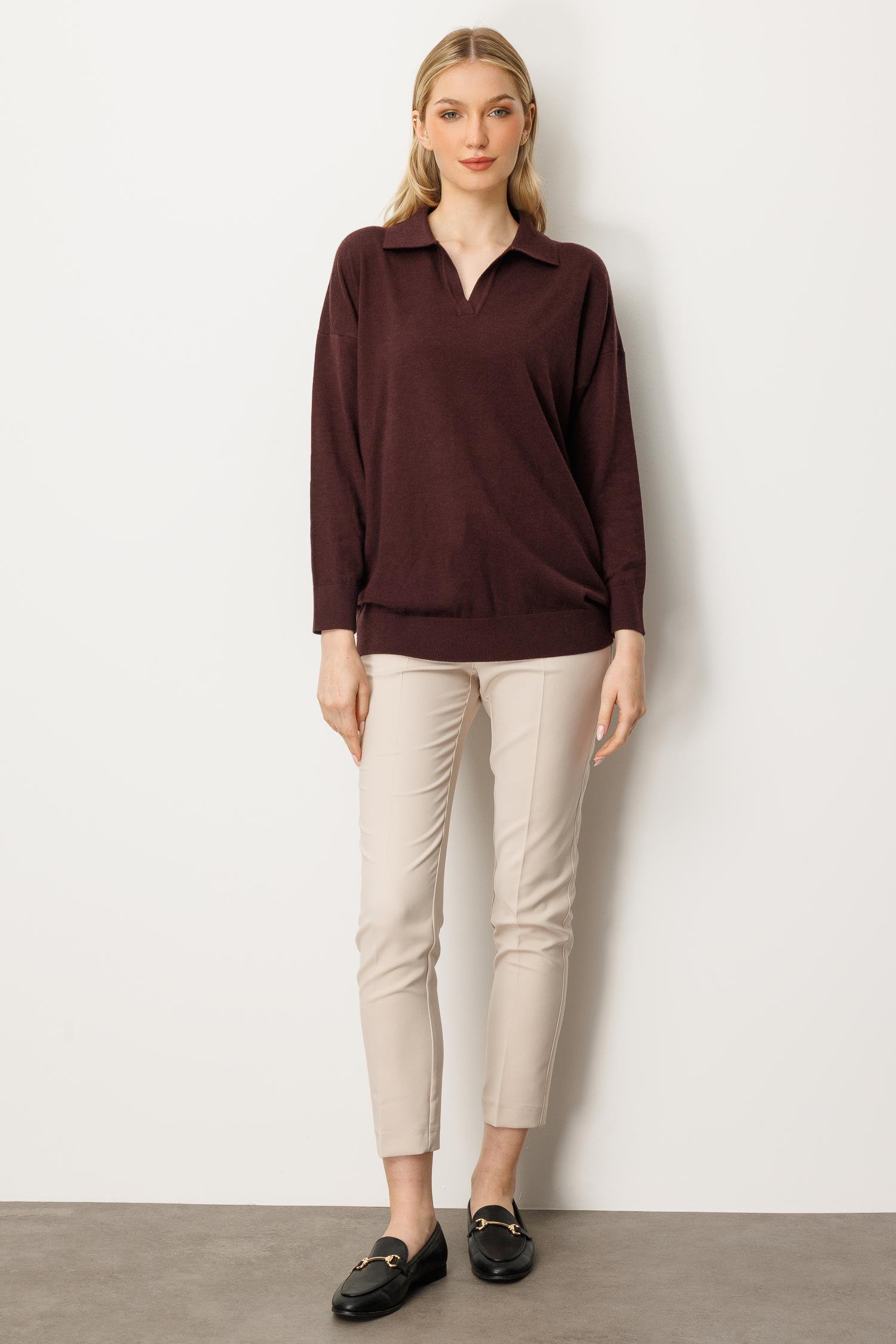 Mutlu Ertan Kadın Gömlek Yaka Triko Bluz Vino 20076 (20076)