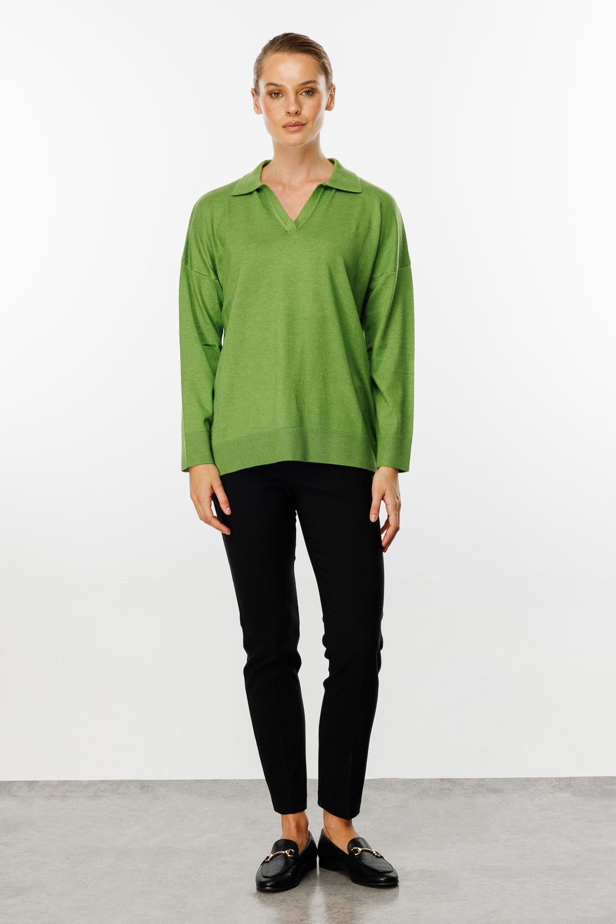 Mutlu Ertan Kadın Gömlek Yaka Triko Bluz Yesil 20076 (20076)