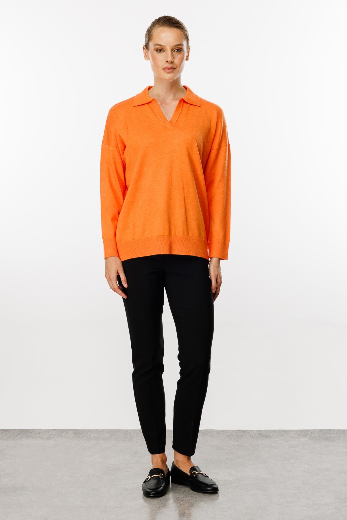 Mutlu Ertan Kadın Gömlek Yaka Triko Bluz Turuncu 20076 (20076)