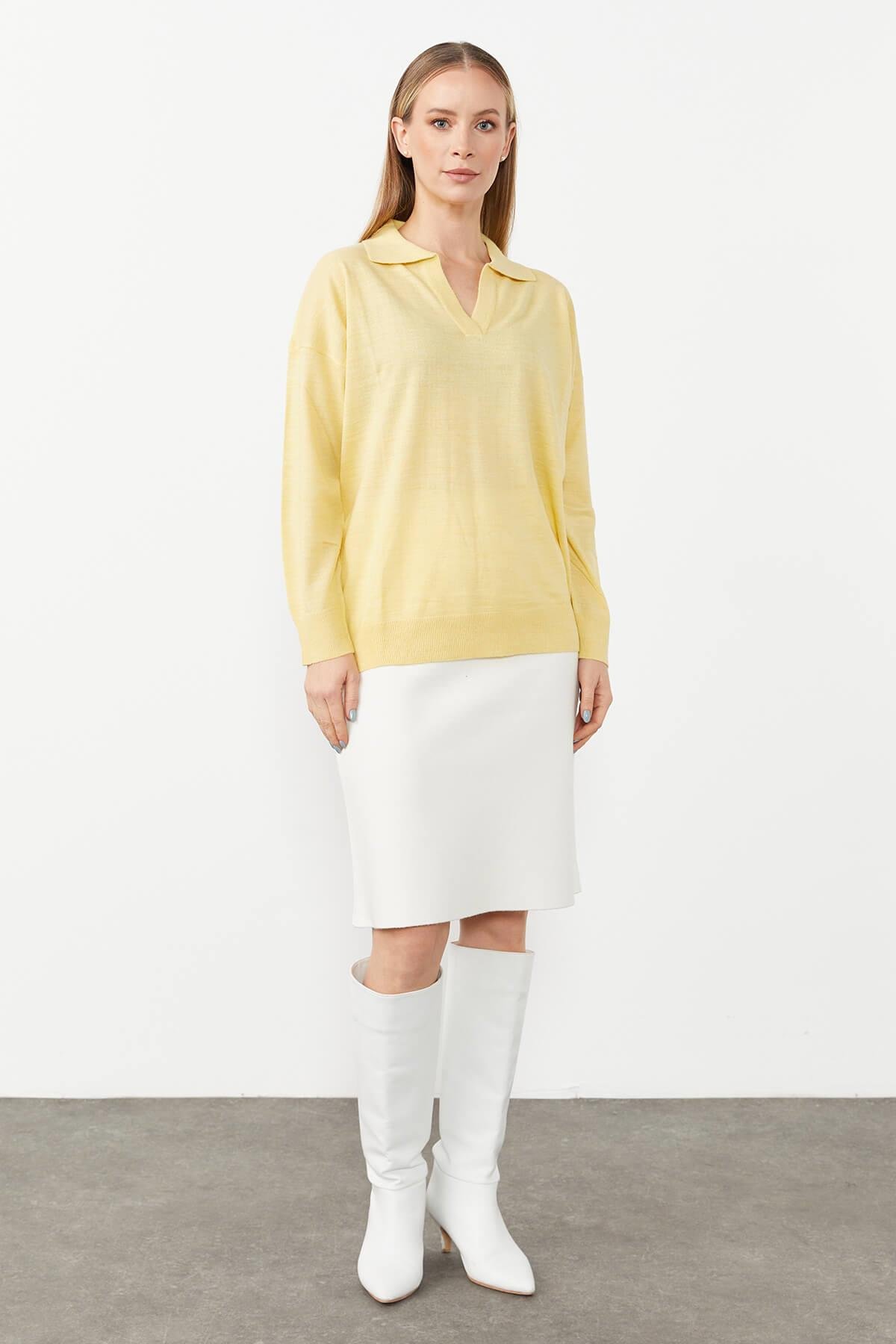 Mutlu Ertan Kadın Gömlek Yaka Triko Bluz Sarı 20086 (20086)
