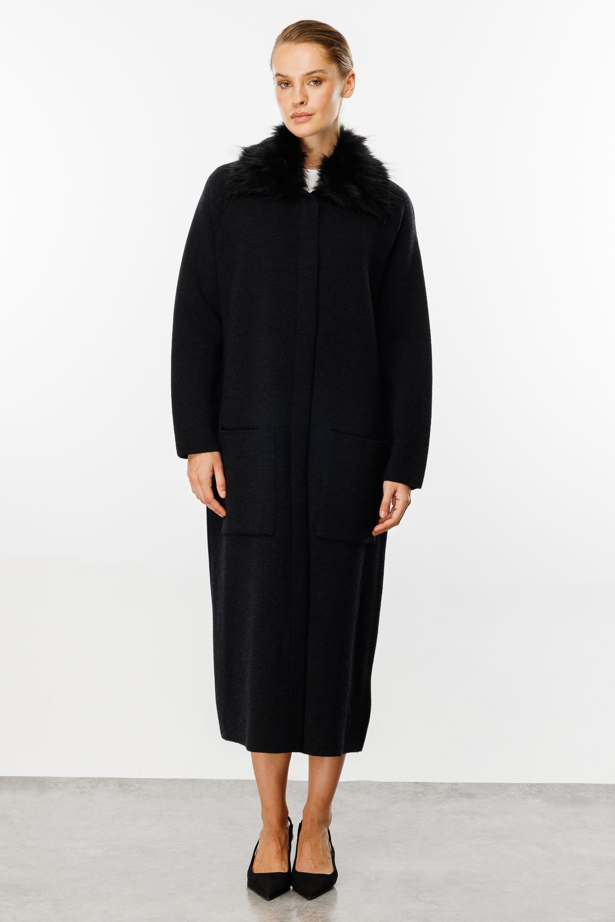 Mutlu Ertan Kadın Kürk Detaylı Yün Pardesü Siyah 20127