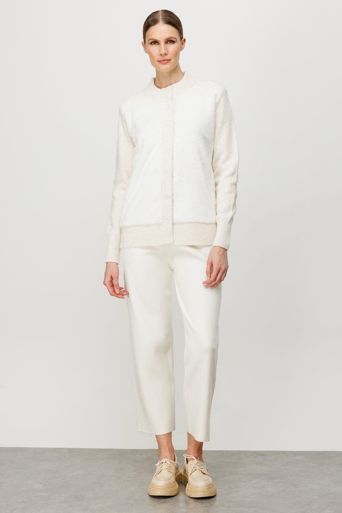 Mutlu Ertan Kadın Kürklü Kısa Triko Hırka Ekru 2550 (2550)