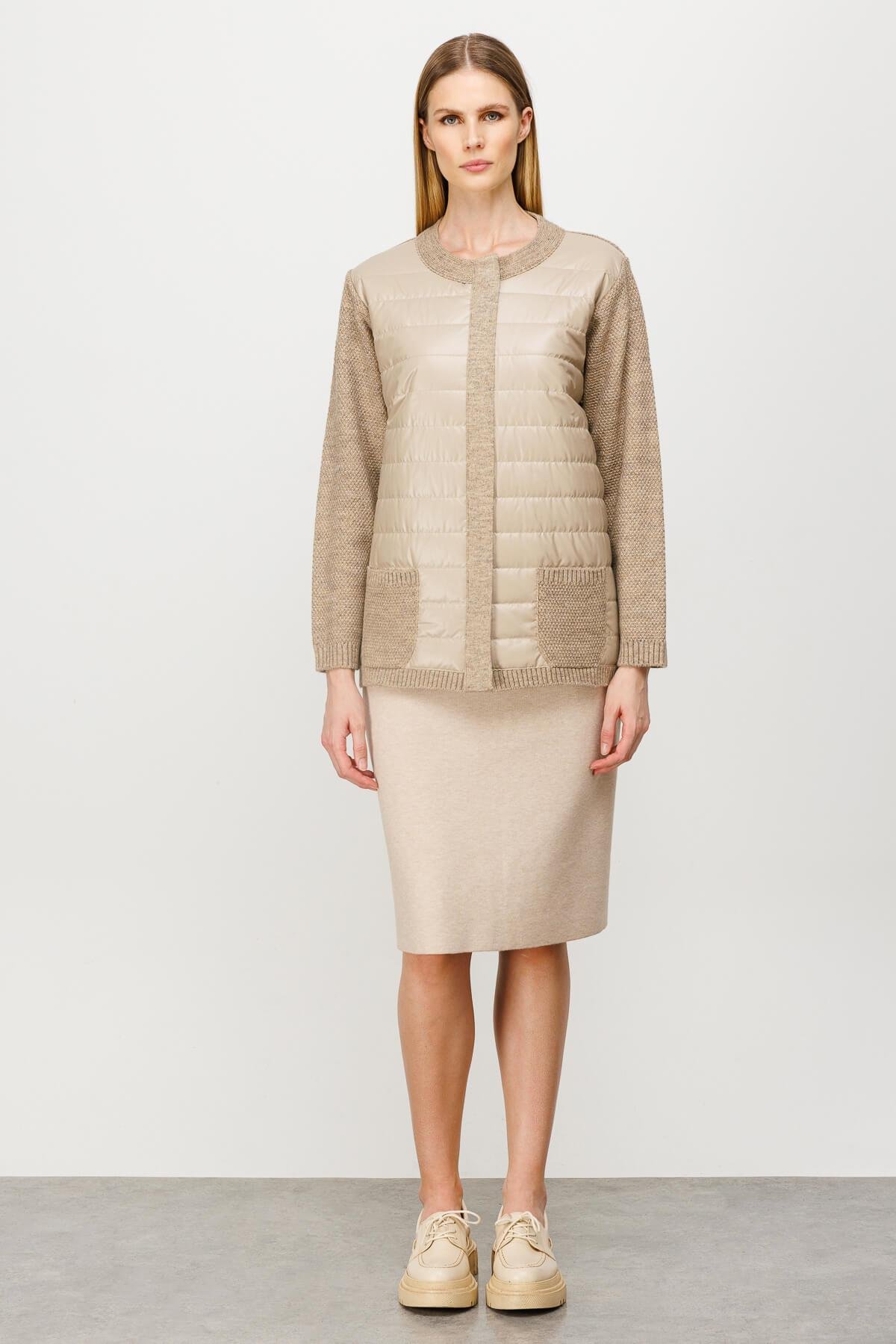 Mutlu Ertan Kadın Kapitone Kombinli Triko Ceket Vizon 20016