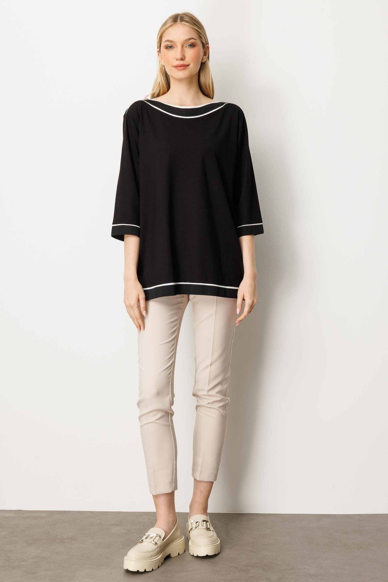 Mutlu Ertan Kadın Kayık Yaka Ribanalı Bluz Siyah 30404