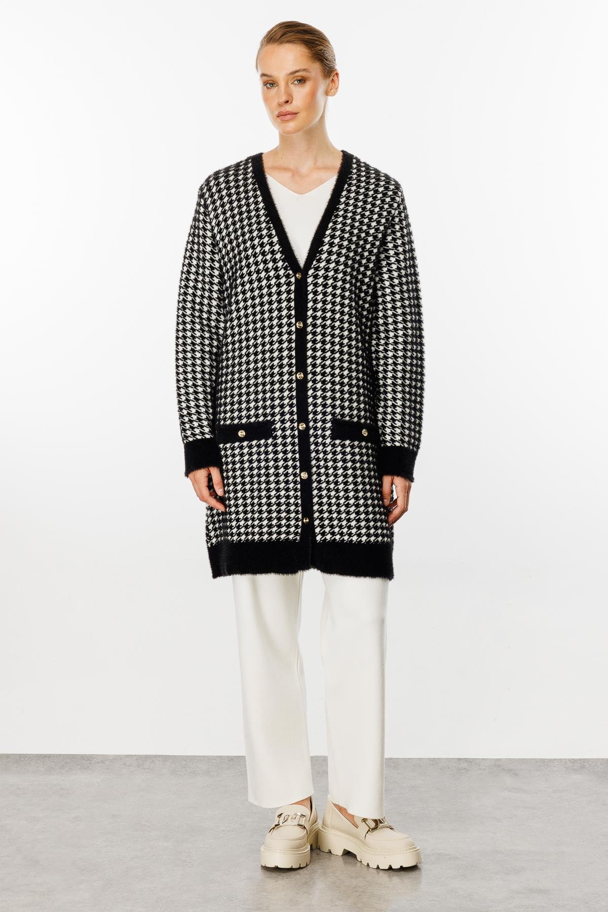 Mutlu Ertan Kadın Angora Kazayagı Hırka Siyah-Ekru 20147 (20147)