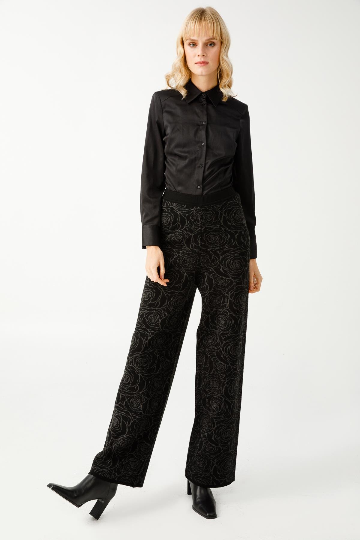 Mutlu Ertan Kadın Gül Desenli Pantolon Siyah 2903