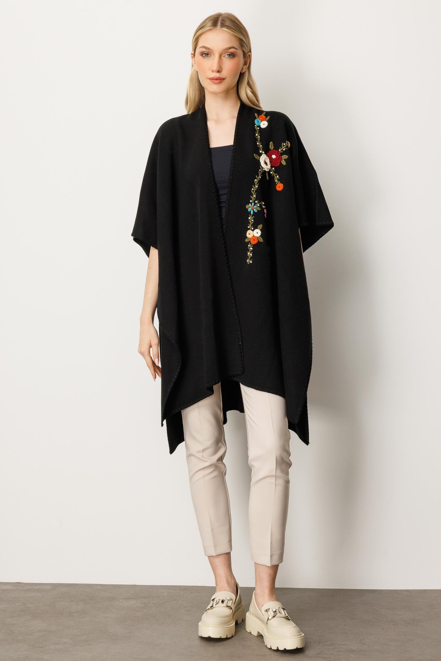 Mutlu Ertan Kadın Nakışlı Panço Siyah 20162 (20162)