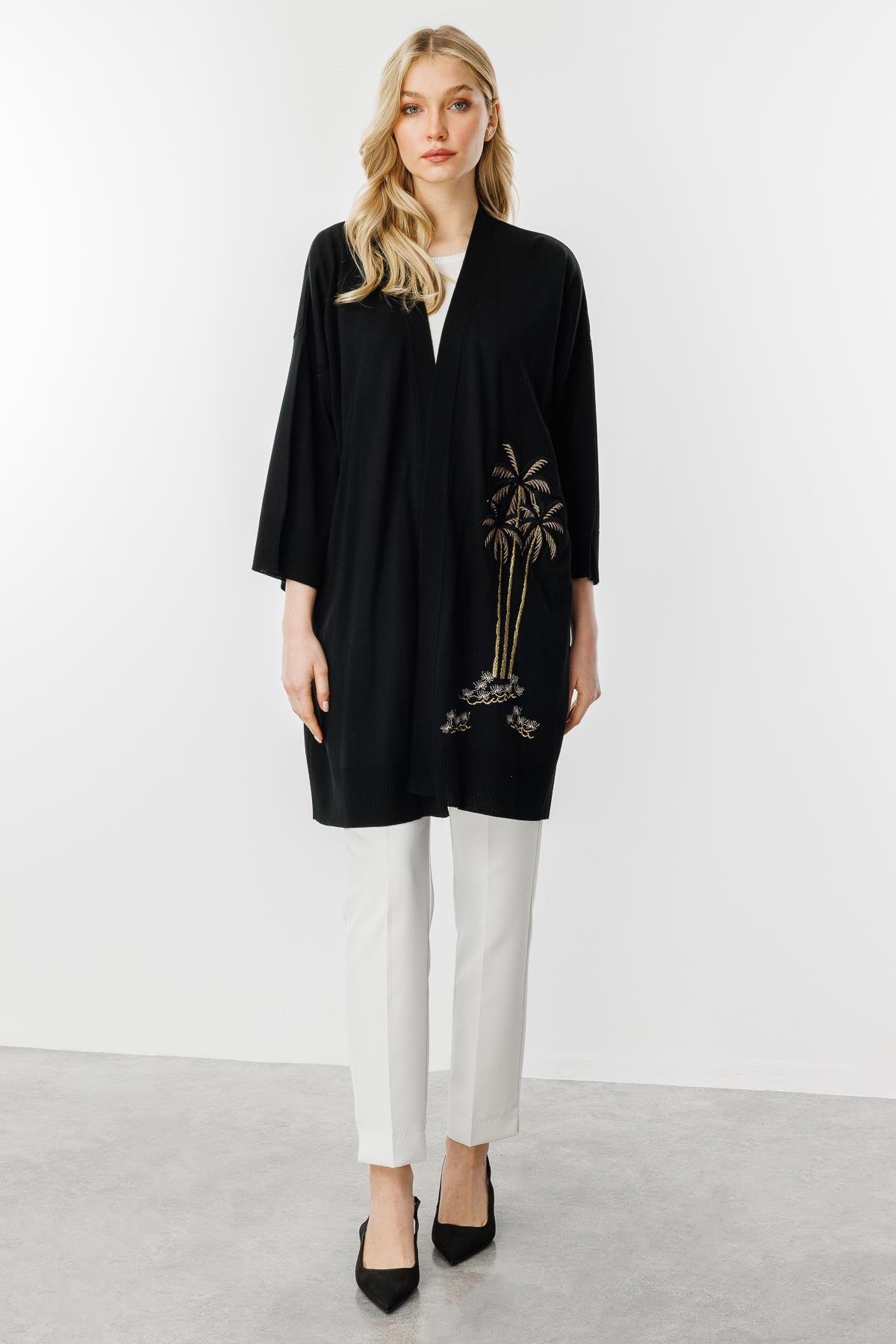 Mutlu Ertan Kadın Nakışlı Truvakar Kol Hırka Siyah 20169
