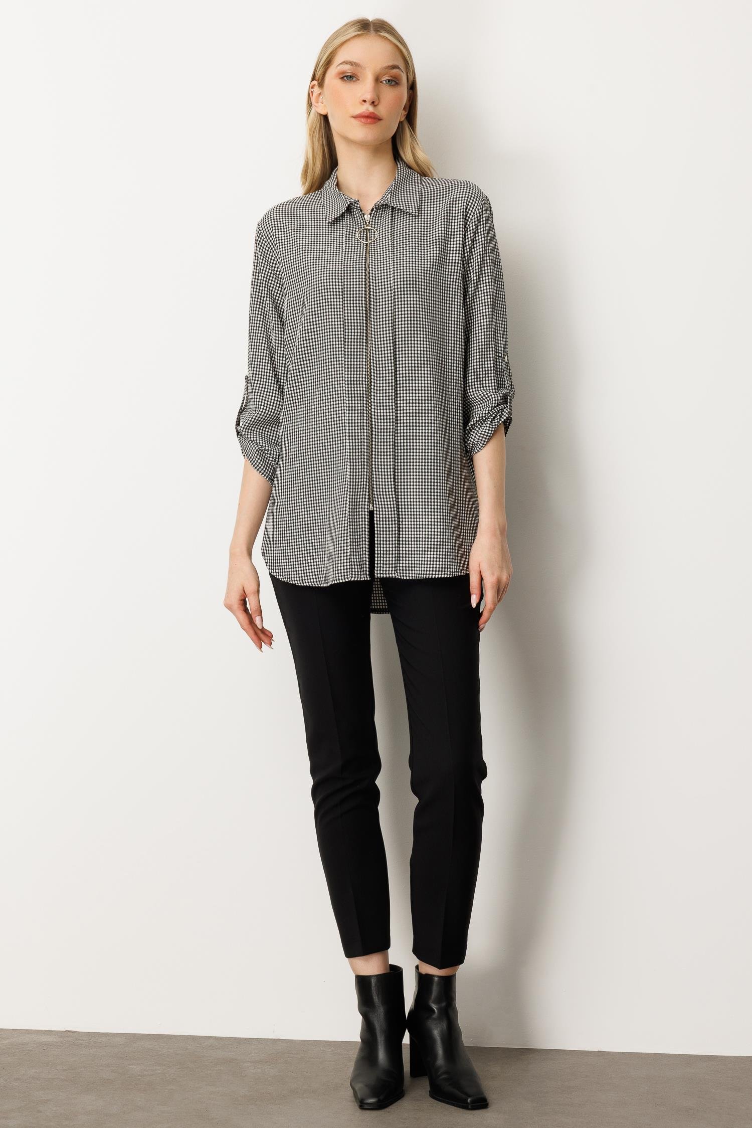 Mutlu Ertan Kadın Pötikare Fermuarlı Gömlek Siyah 30391 (30391)