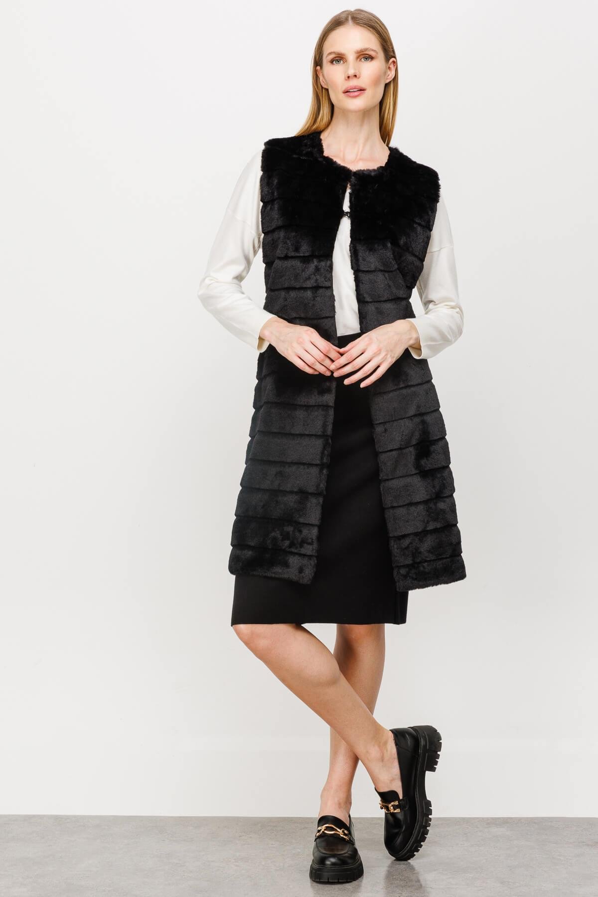 Mutlu Ertan Kadın Peluş Kombinli Uzun Triko Yelek Siyah 2938
