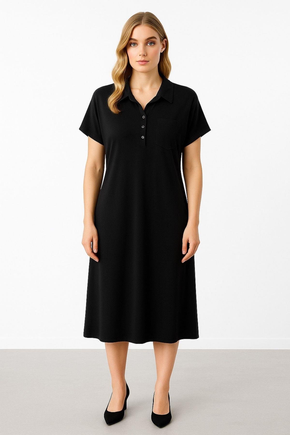Mutlu Ertan Kadın Polo Yaka Düğmeli Kısa Kollu Elbise Siyah 30383 (30383)