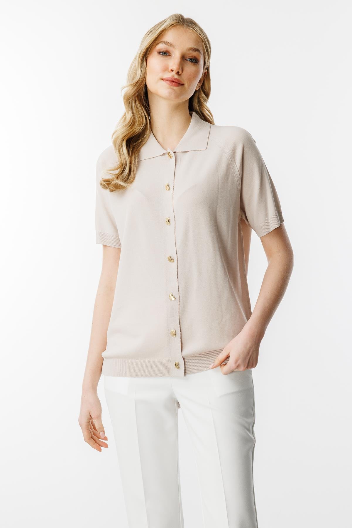 Mutlu Ertan Kadın Polo Yaka Kısa Kol Triko Hırka Vizon 20185 (20185)