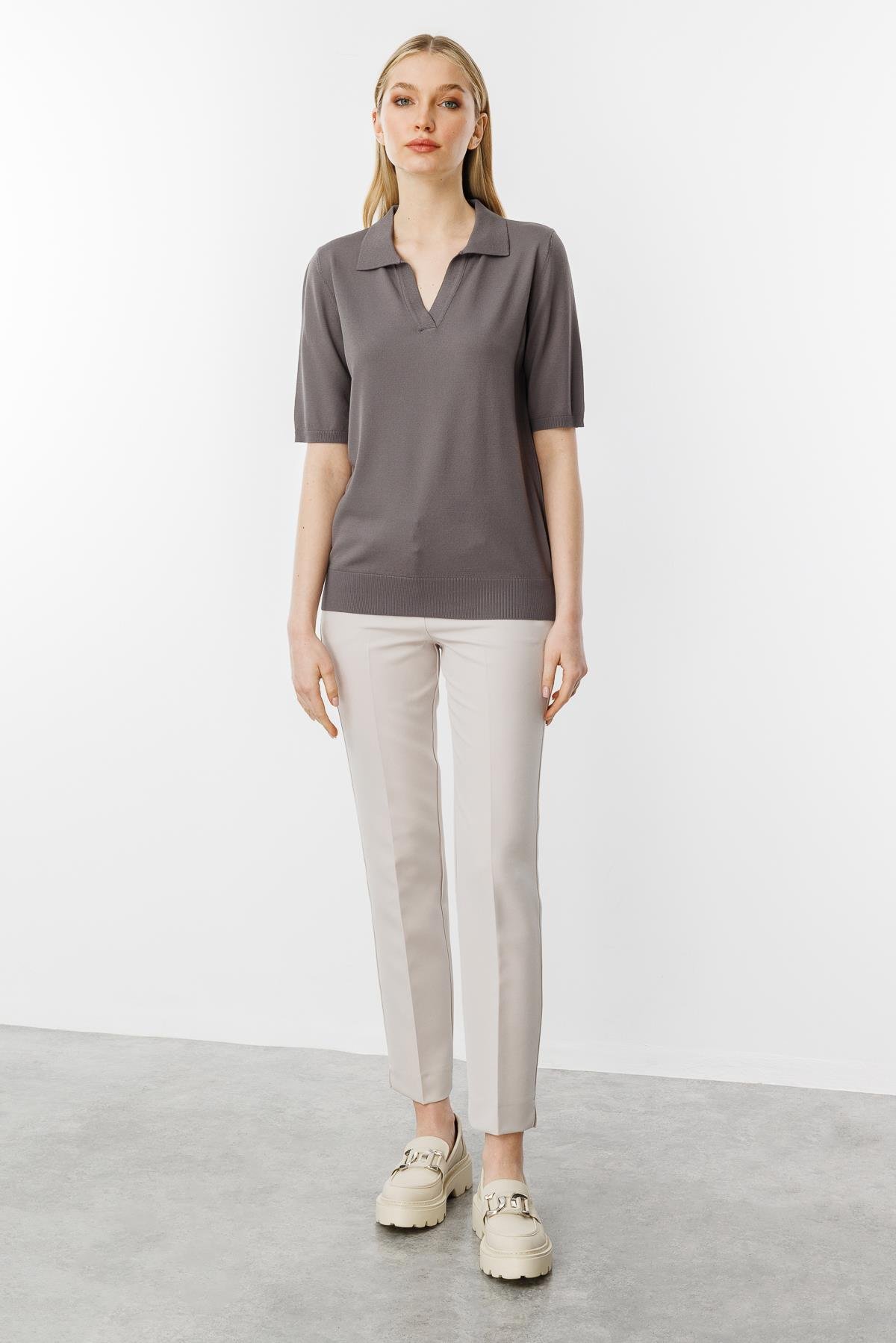 Mutlu Ertan Kadın Polo Yaka Kısa Kol Triko Bluz Fume 20173 (20173)