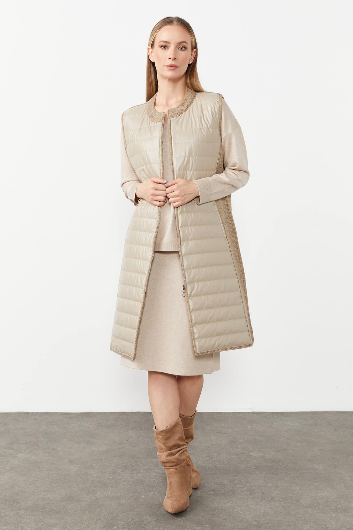 Mutlu Ertan Kadın Ray Desen Uzun Yelek Vizon 20074 (20074)