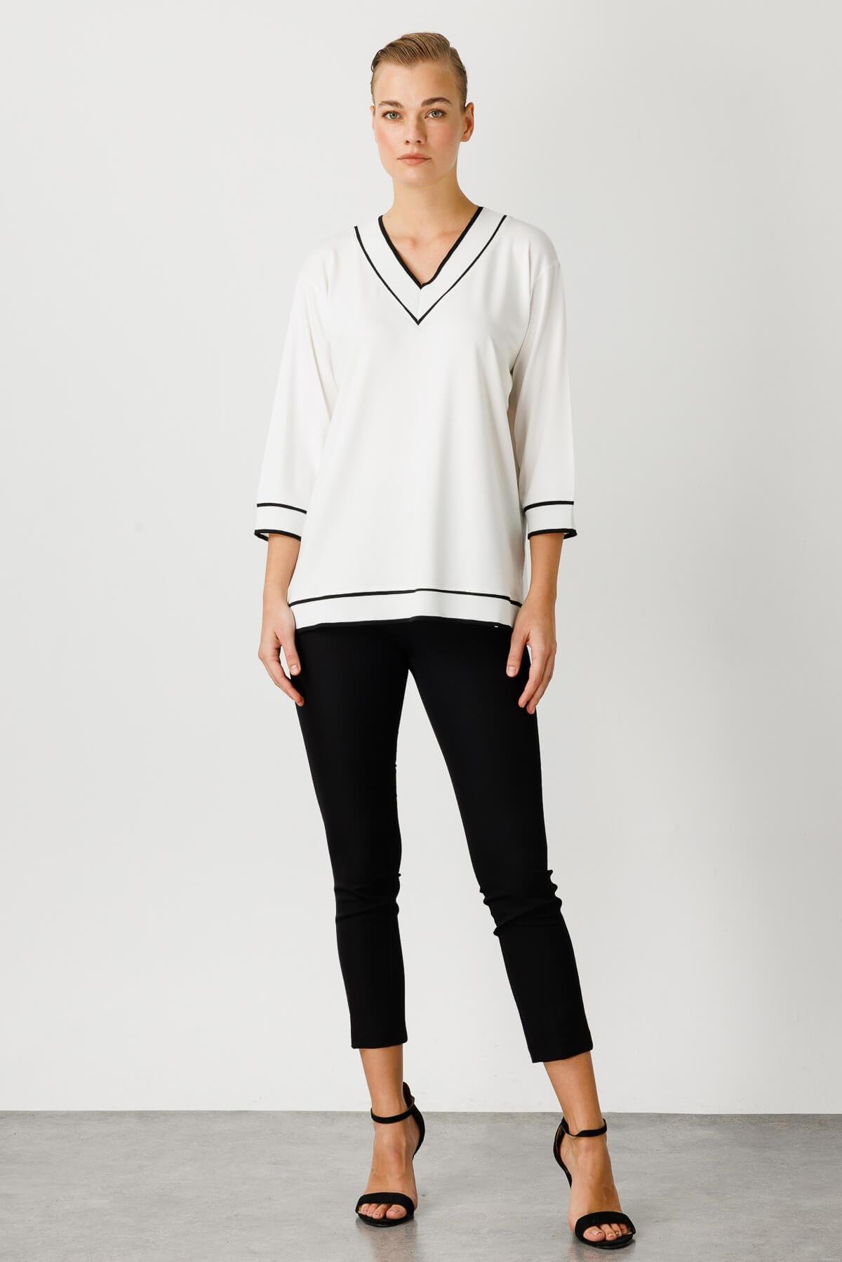 Mutlu Ertan Kadın Ribana Kombinli Penye Bluz Ekru 30233 Mutlu Ertan Kadın Ribana Kombinli Penye Bluz Siyah 30233