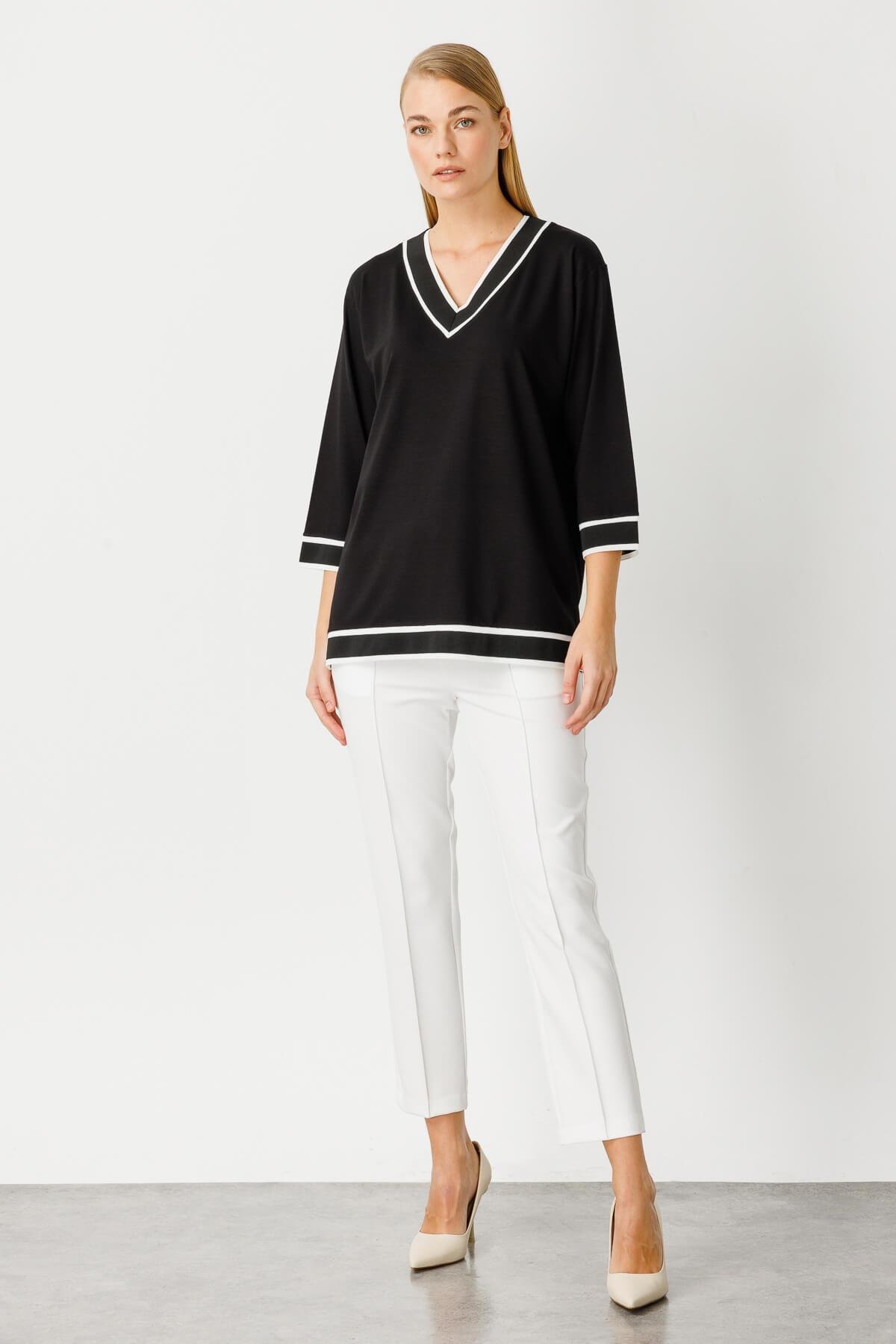 Mutlu Ertan Kadın Ribana Kombinli Penye Bluz Ekru 30233 Mutlu Ertan Kadın Ribana Kombinli Penye Bluz Siyah 30233