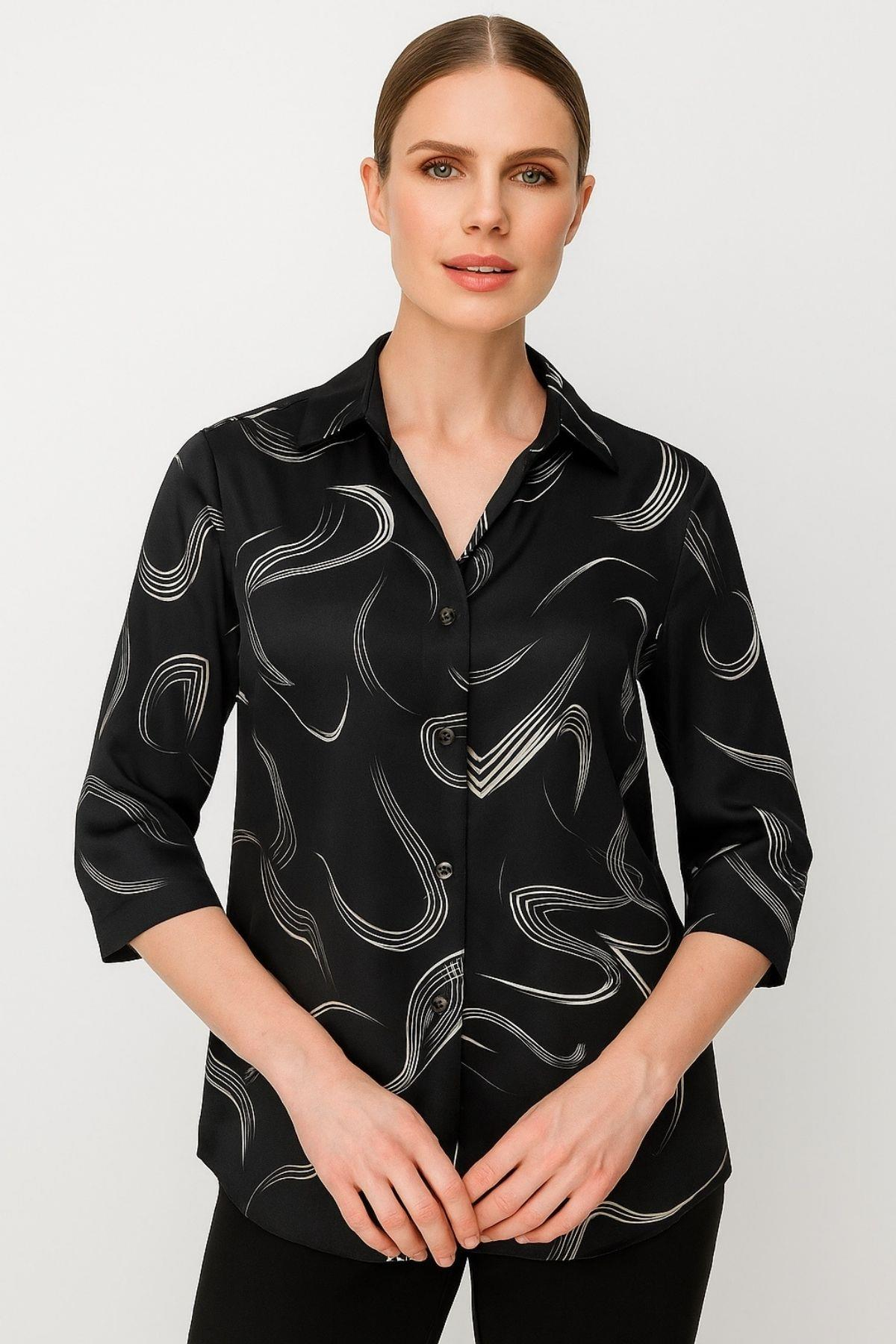 Mutlu Ertan Kadın Saten Desenli Gömlek Siyah 30395 (30395)