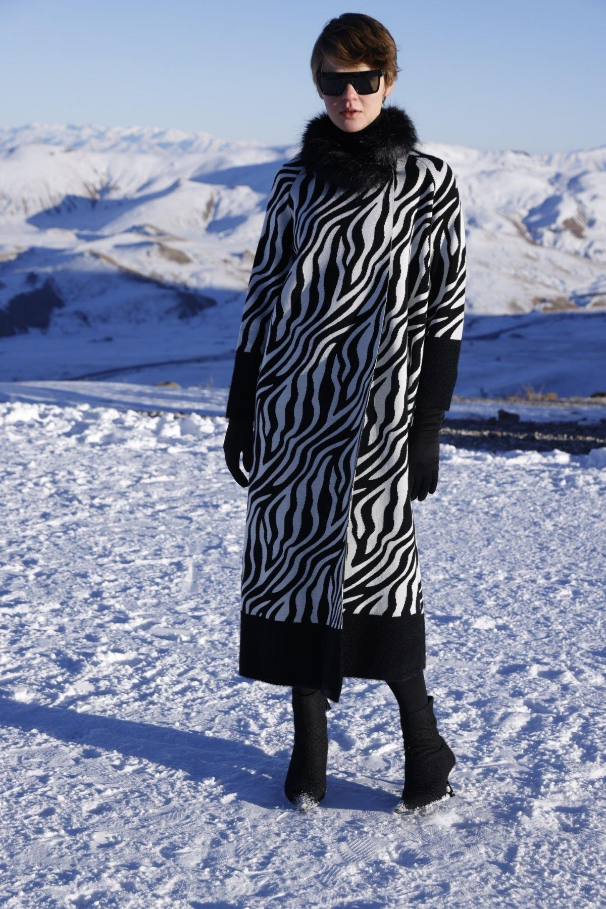 Mutlu Ertan Kadın Tıger Desen Pardesü Siyah-Ekru 2931