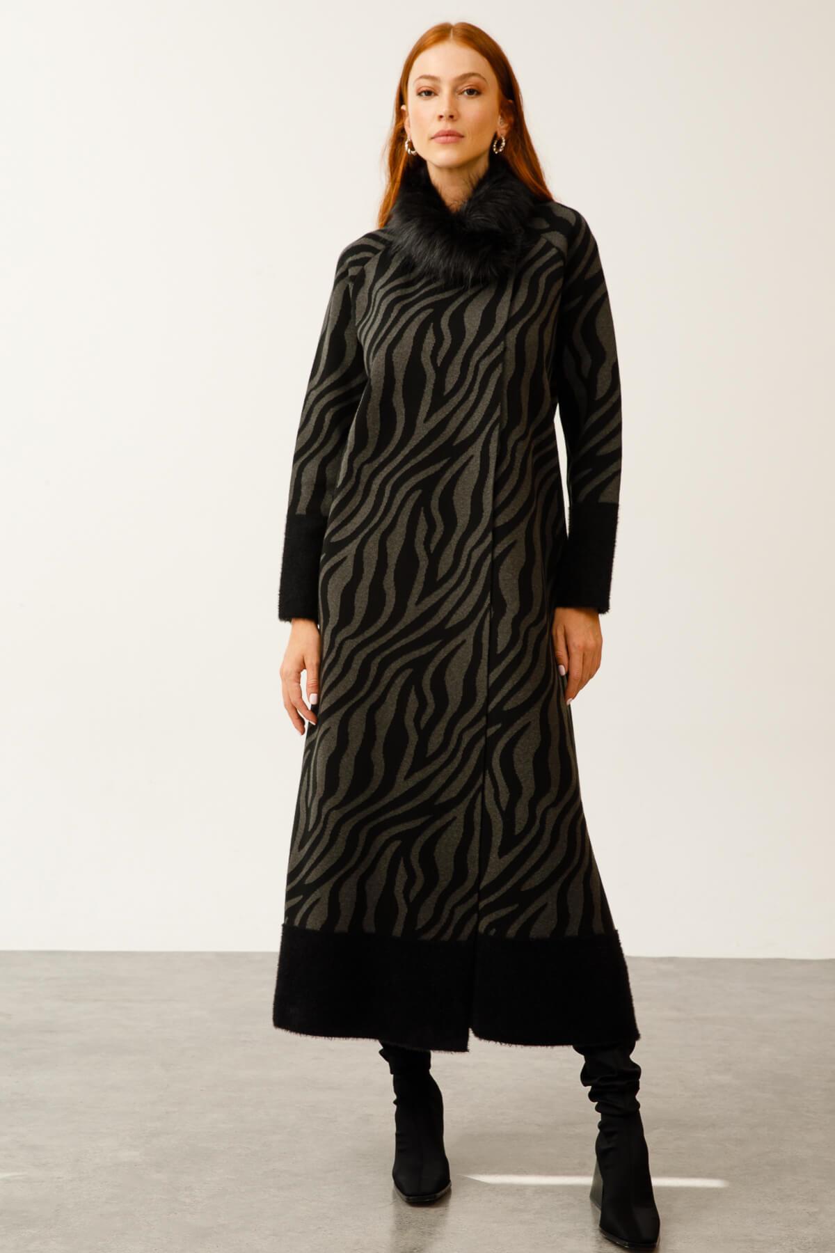 Mutlu Ertan Kadın Tıger Desen Pardesü Siyah-Füme 2931