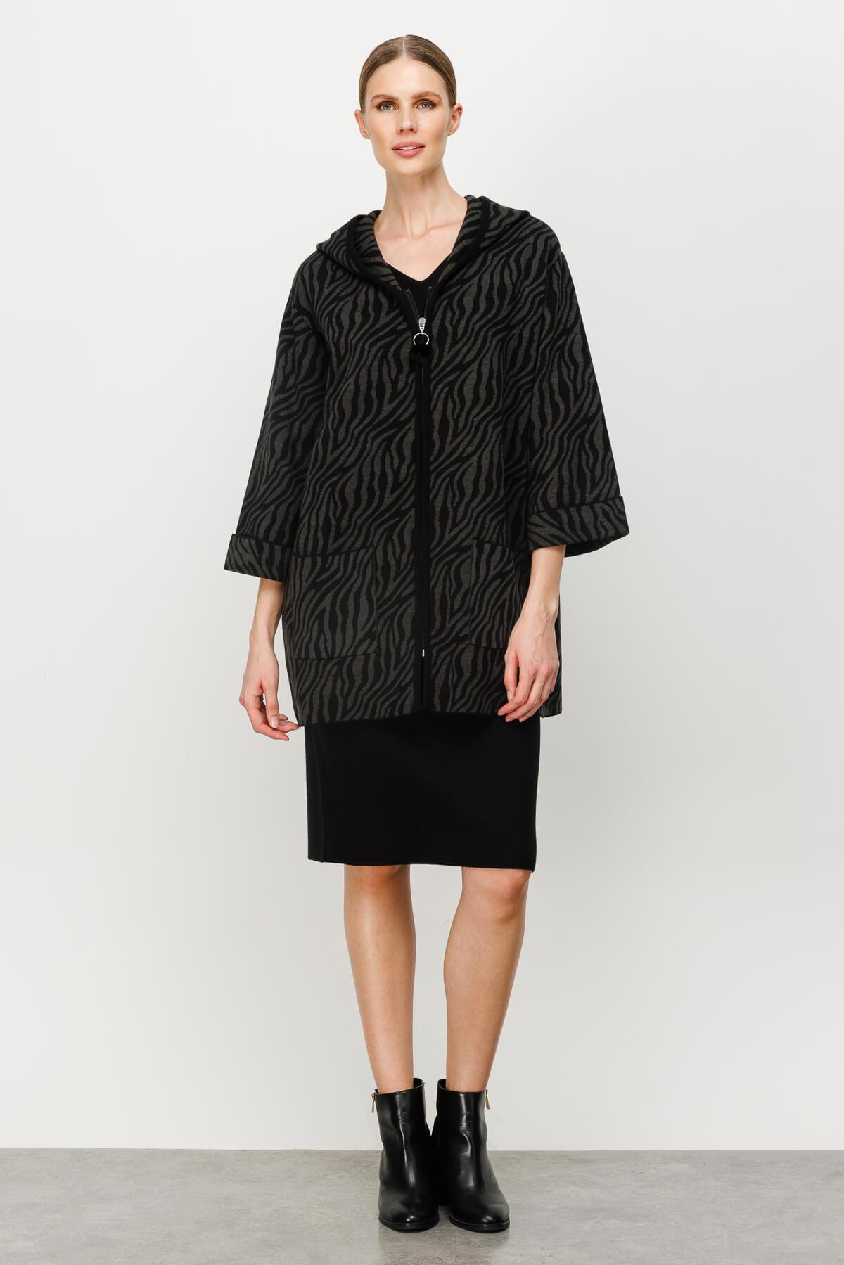 Mutlu Ertan Kadın Tıger Desenli Hırka Siyah-Füme 20039