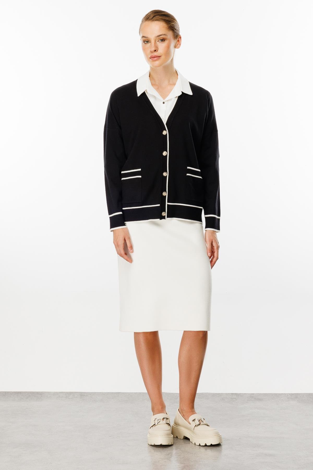Mutlu Ertan Kadın Triko Kısa Çizgili Cepli Viskon Hırka Siyah 20132 (20132)