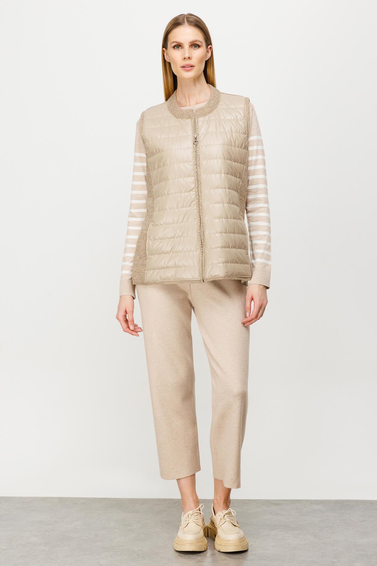 Mutlu Ertan Kadın Triko Kombinli Kapitone Yelek Vizon 20004