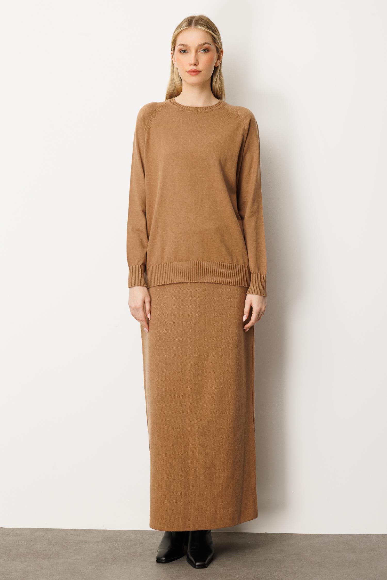Mutlu Ertan Kadın Uzun Triko Etek Camel 20233 (20233)