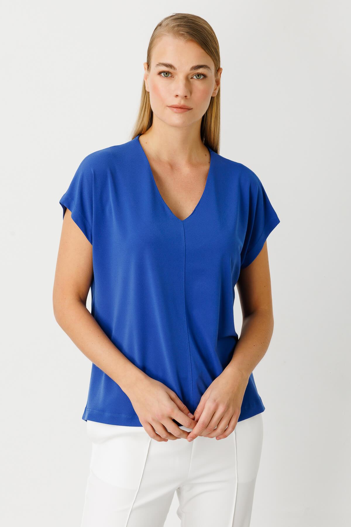 Mutlu Ertan Kadın V Yaka Basic Bluz Saks 30175 (30175)