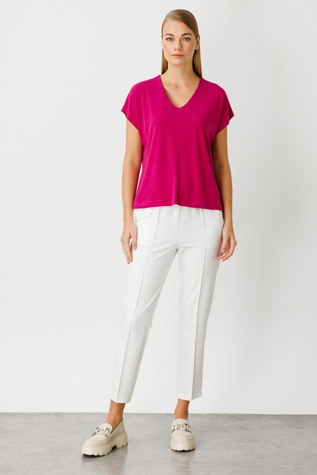 Mutlu Ertan Kadın V Yaka Basic Bluz Fuşya 30175 (30175)