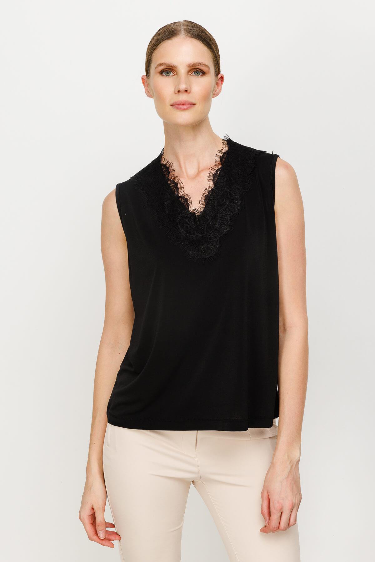 Mutlu Ertan Kadın V Yaka Dantelli Atlet Siyah 30174